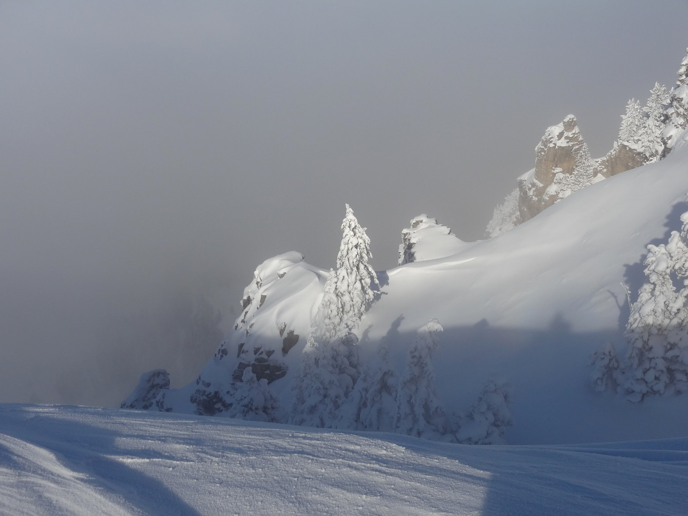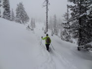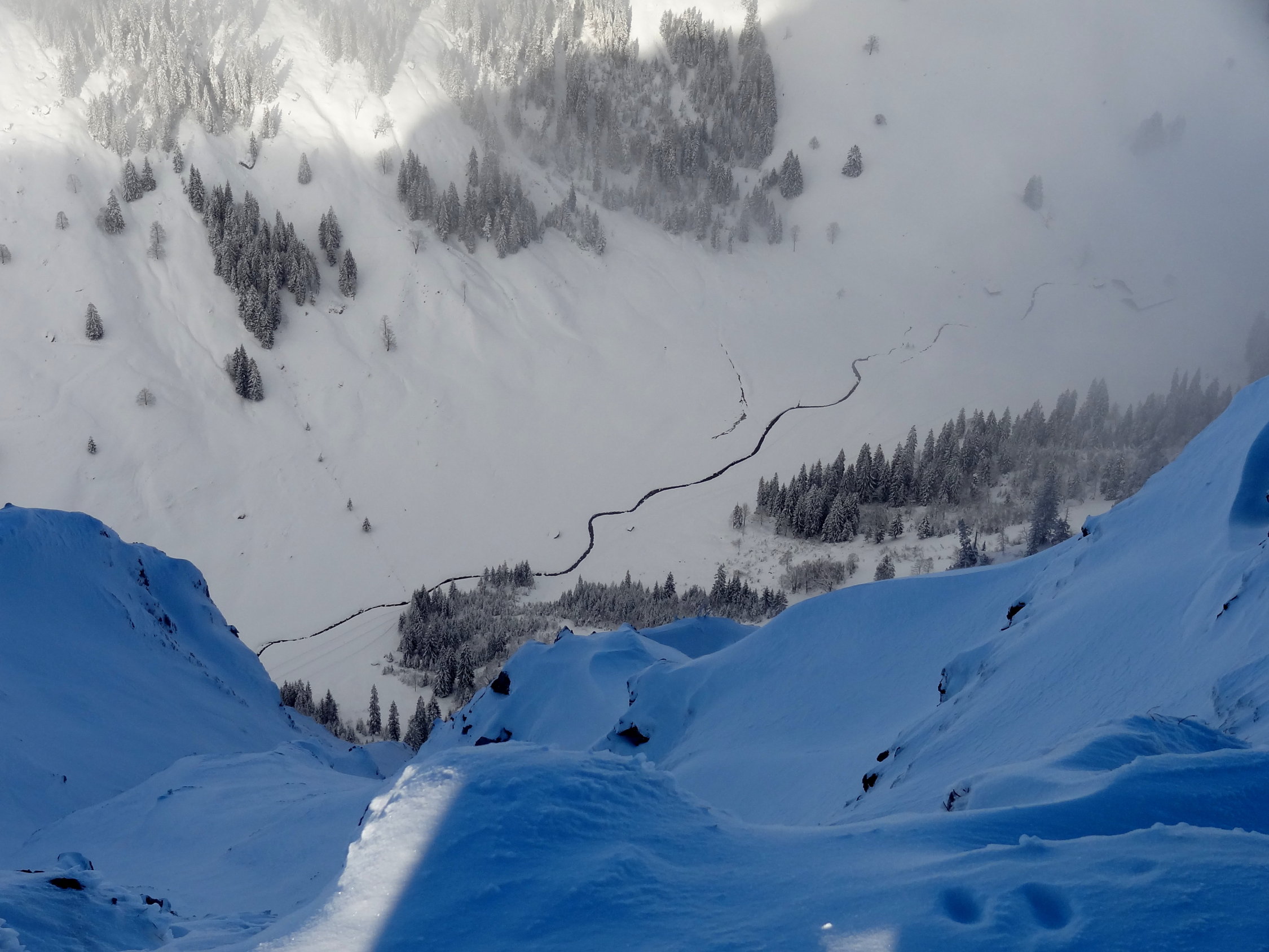 Schneeverfrachtungen. Der Neuschnee hat nicht gebunden und hat überhaupt keine feste Unterlage. Beim Spuren (Schneeschuh) ist man abwechselnd sehr tief eingesunken oder auf versteckten Steine aufgetreten. Steilhänge aller Expositionen könnten kritisch sein.