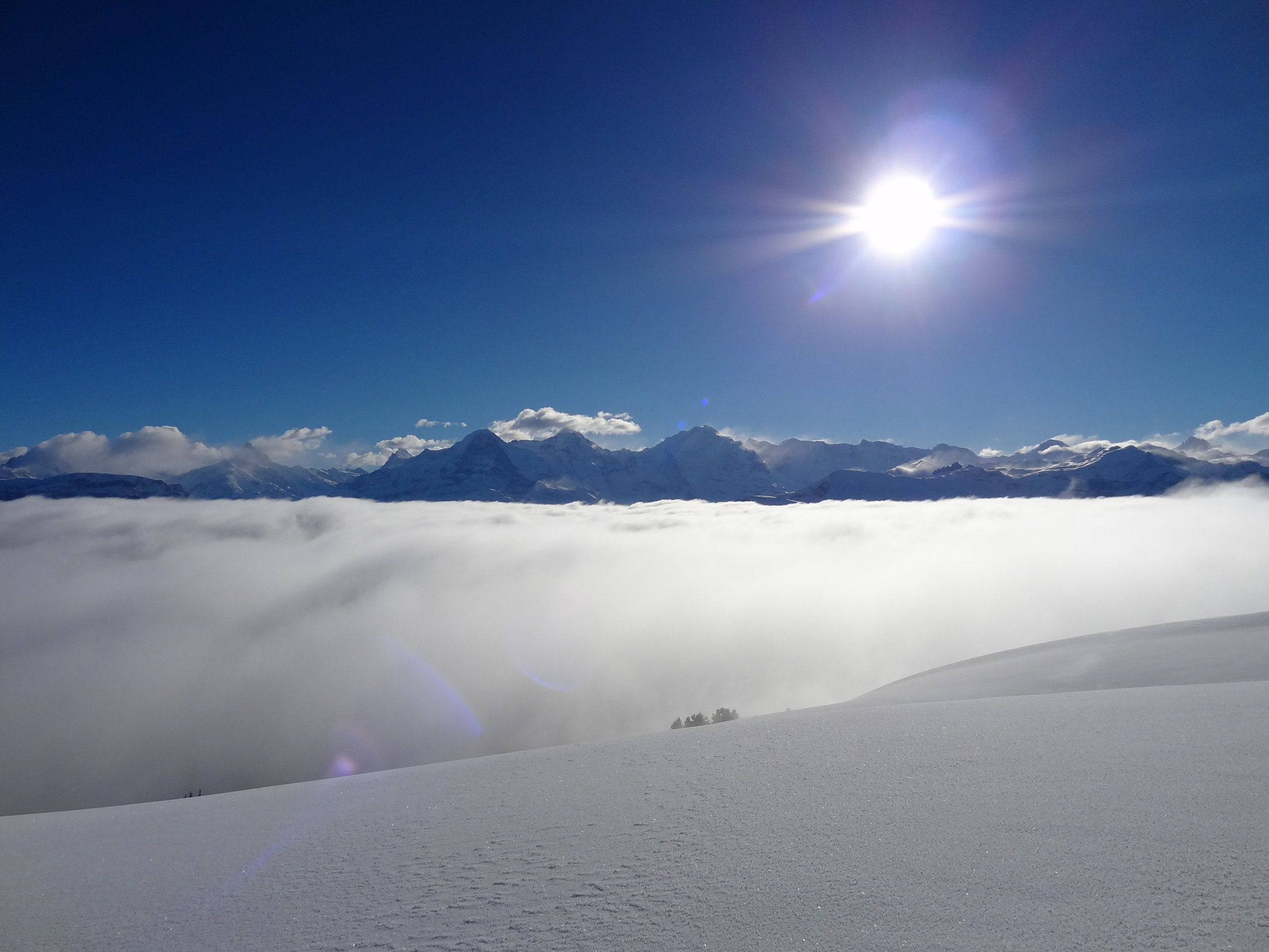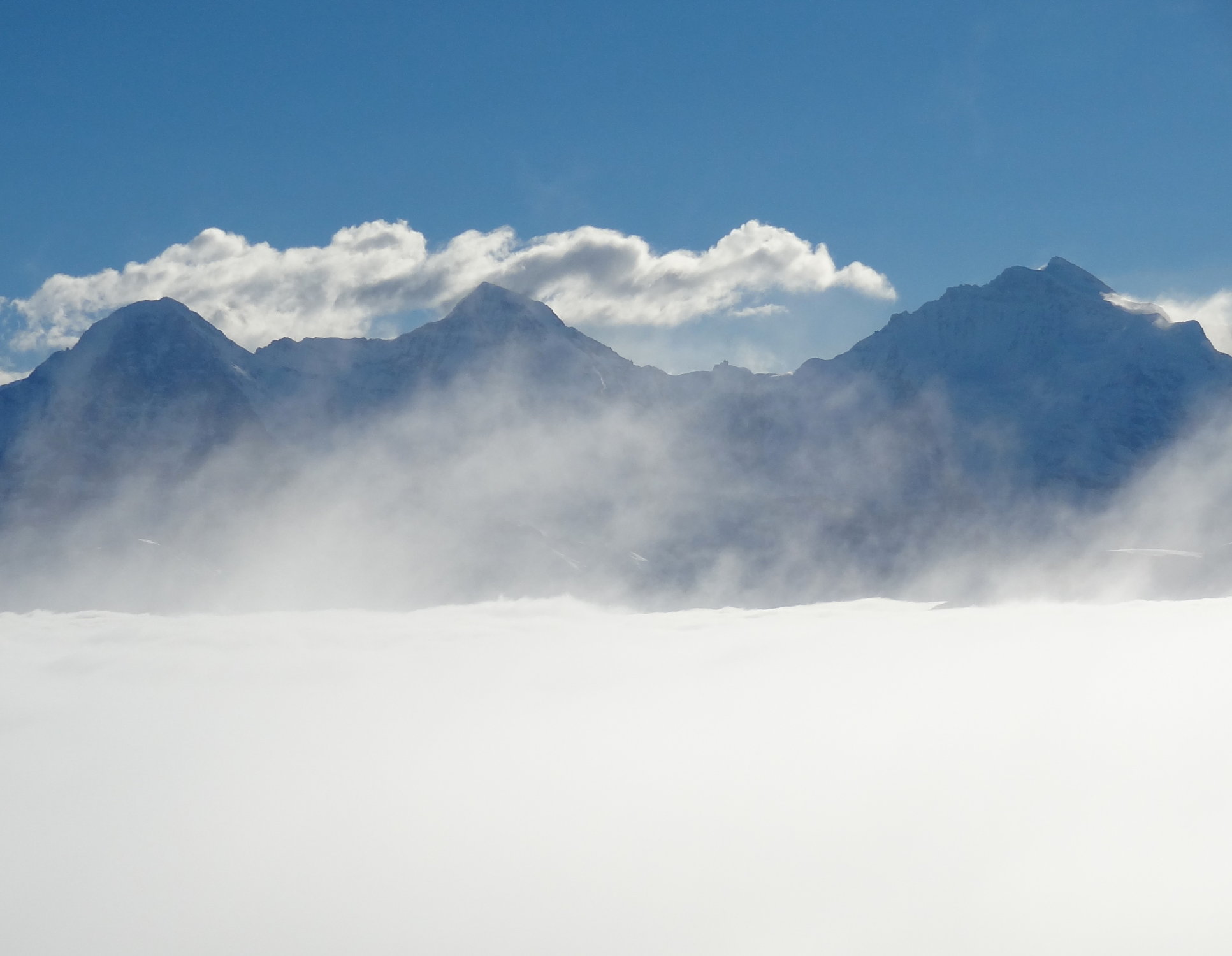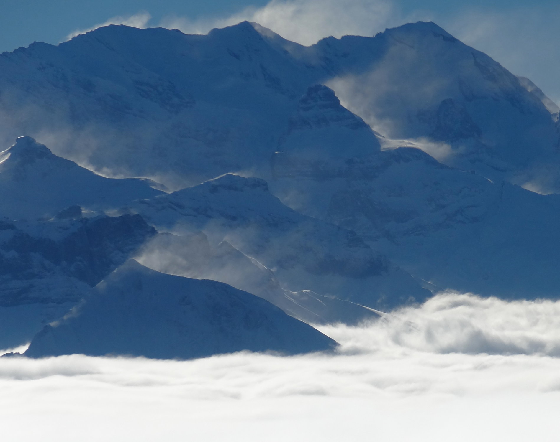 Auf dem Gipfel zügige Bise. Im Berner Oberland hingegen Bisensturm (Siehe Bilder)