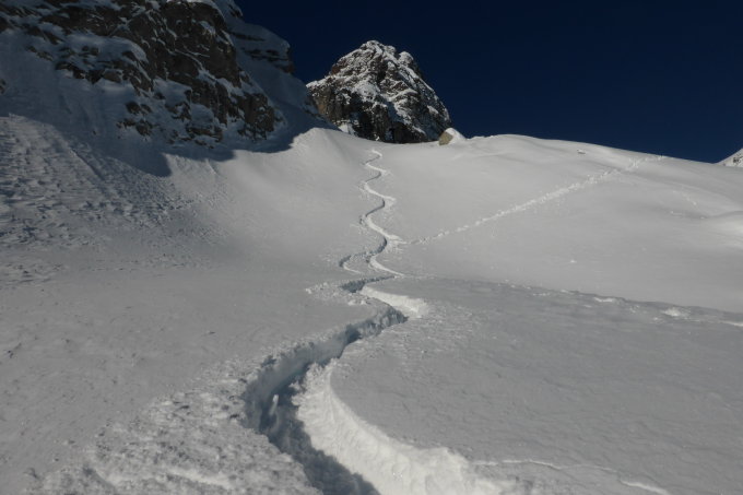 Top Verhältnisse ... steile Südhänge wurden vor Mittag feucht.