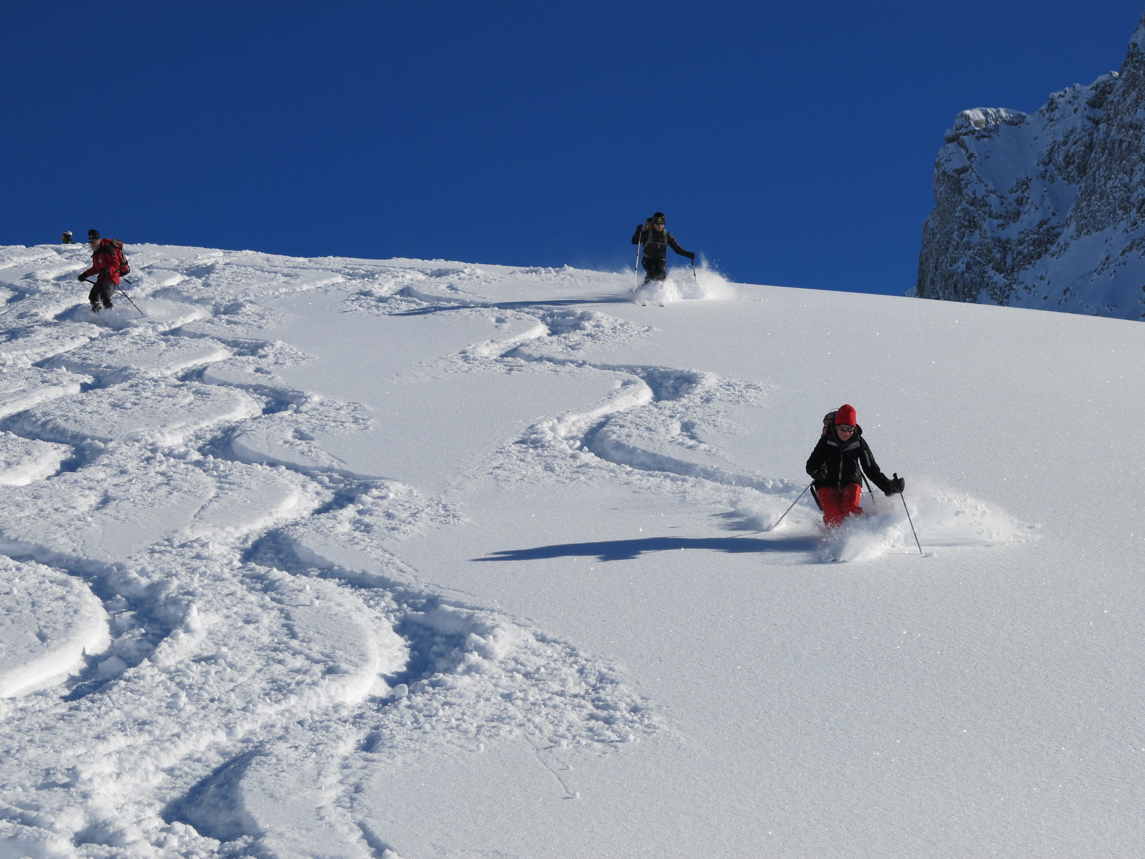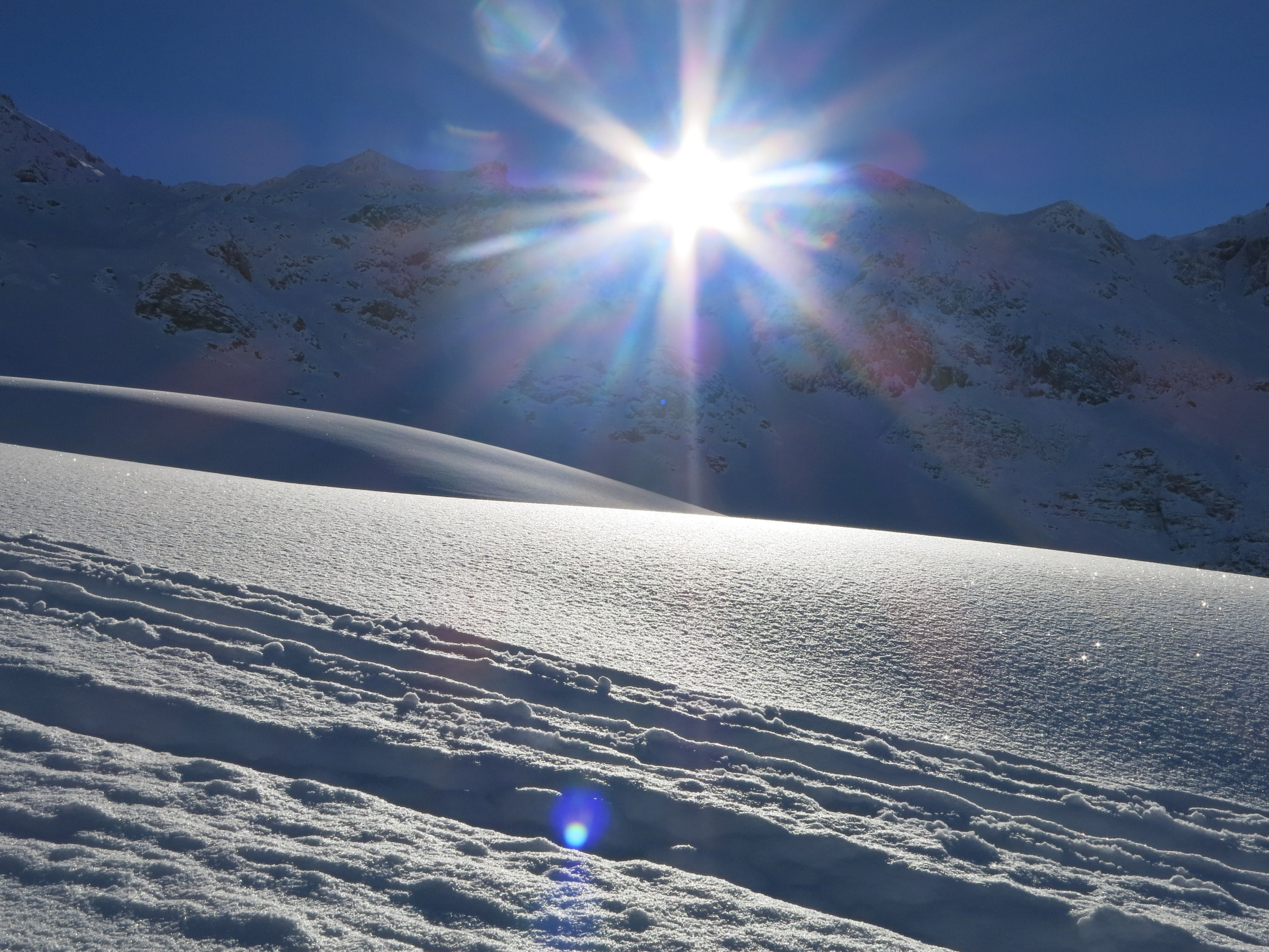 Wunderschöne Verhältnisse. Nur im Tal etwas zu wenig Schnee, aber gut fahrbar.