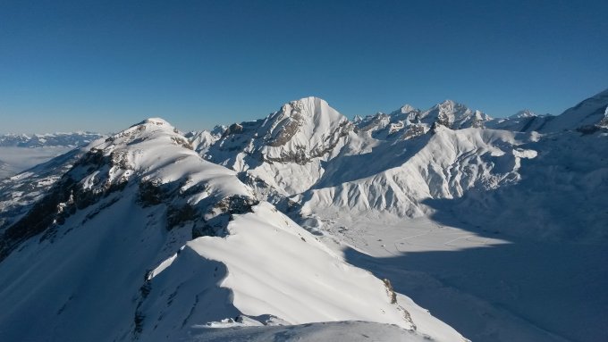 Man konnte mit den Skis fast bis auf den Gipfel steigen. Steine sind gut überdeckt!