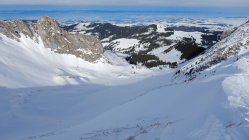 Am Südwestgrat Sommerweg des Gantrisch hatte es nur auf dem Weg Schnee also war klar dass ich durch das Nordwestcouloir abfahren muss und das hat mich sehr Überrascht dass ich in diesem doch noch durchwegs Pulver fand ohne eine einzige Abfahrtsspur drin (siehe Bilder)