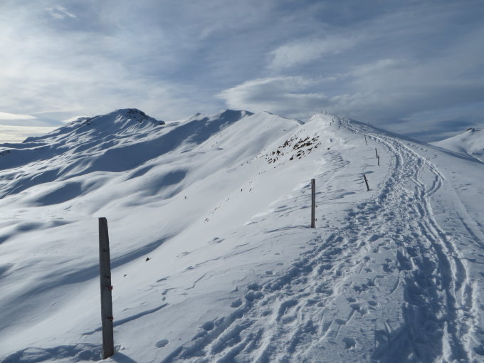 Im unteren Teil wenig Schnee, im oberen Teil plötzlich sehr viel Schnee mit Verwehungen. Gipfelhang in nordöstlicher Richtung wegen Verwehungen gemieden, da erhebliche Lawinengefahr. Skiabfahrt in östlicher Richtung (Gipfelhang südlich umfahren). Übriger Teil der Skitour lawinensicher (auch bei grösseren Schneemengen).
