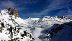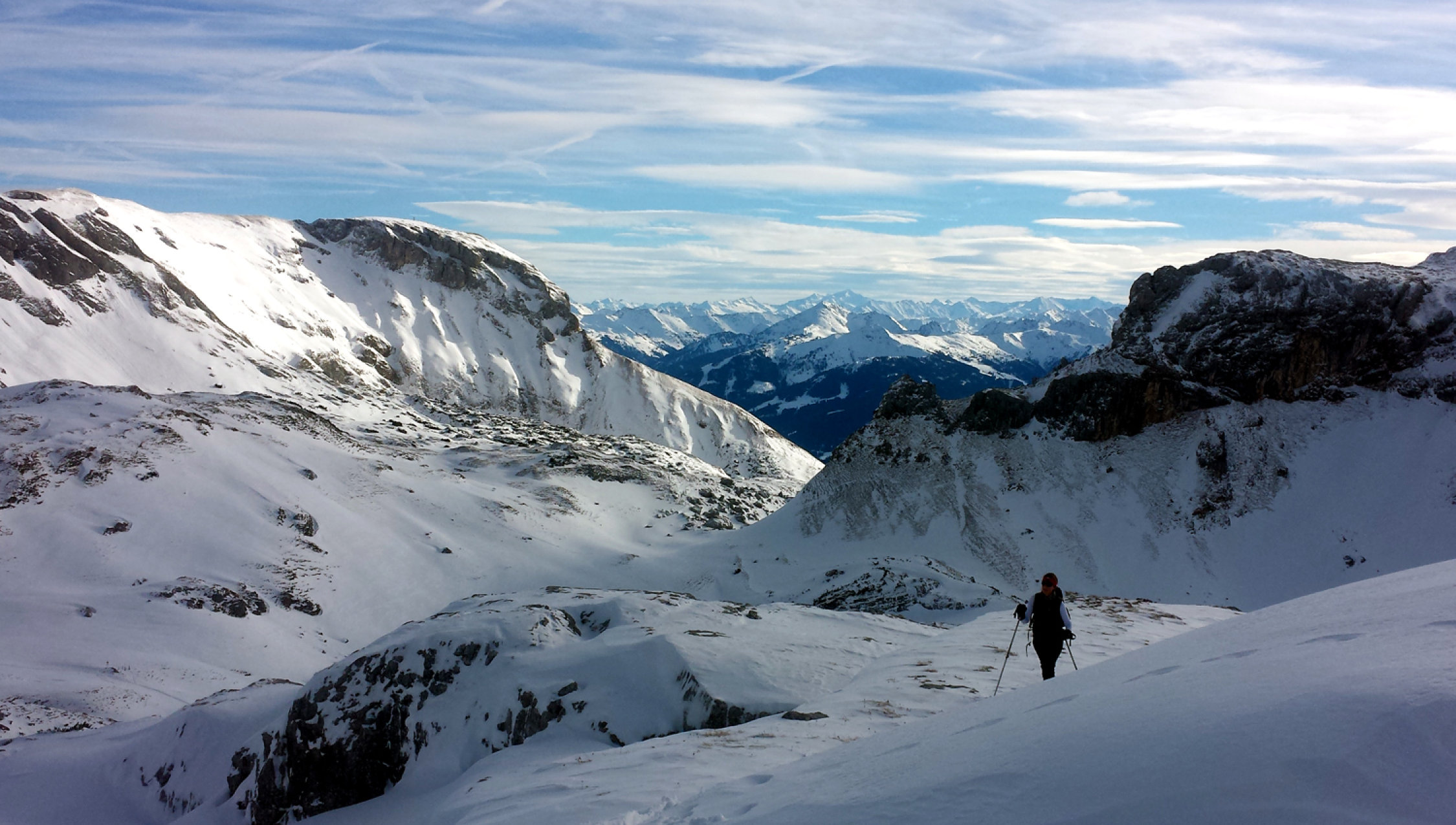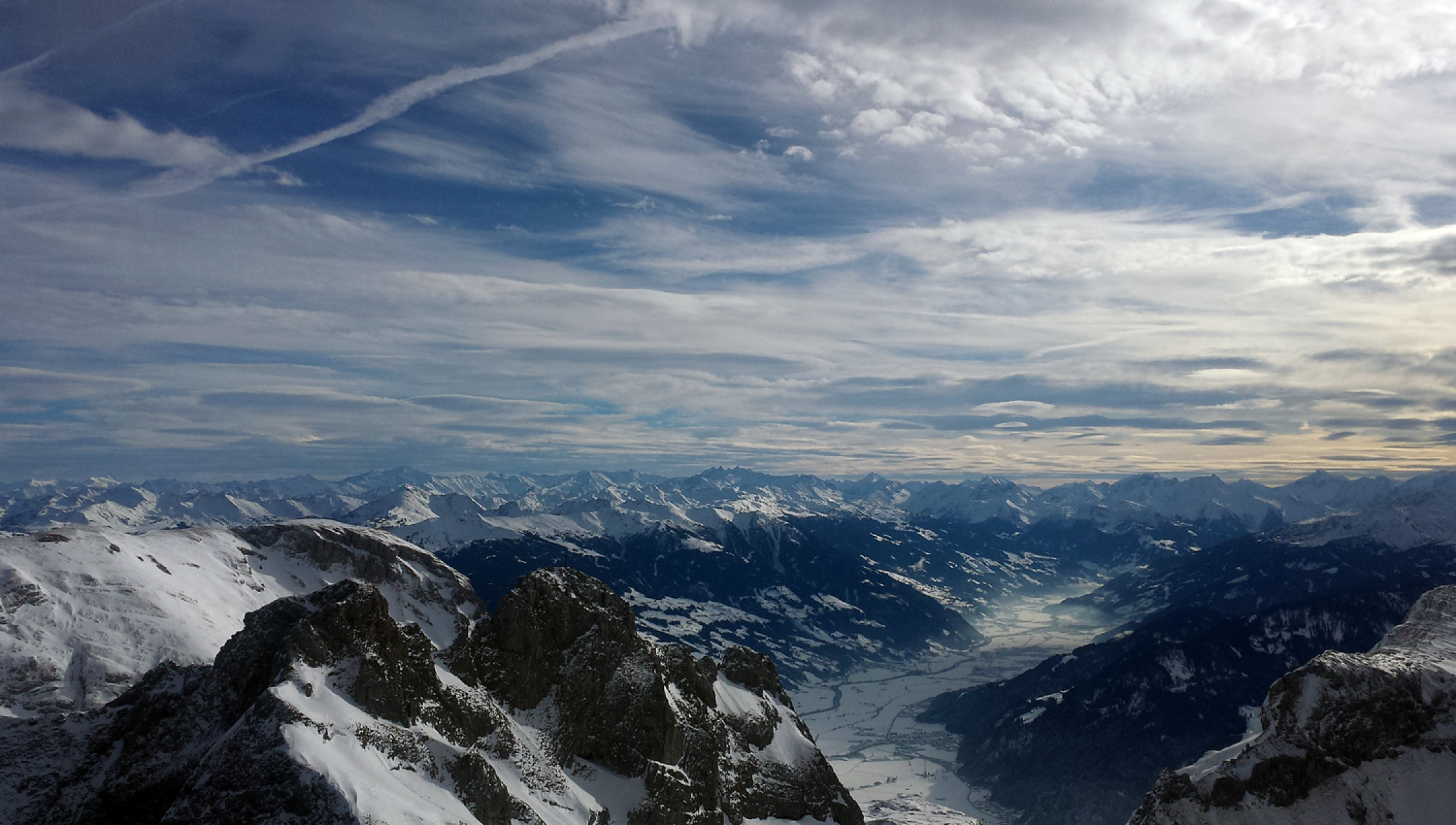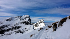 Bei einer Rundschau auf die anderen Gbeirgsgruppen schauts auch nicht besonders aus, außerdem wurde der Schnee vom nachmittags heftigen Wind grosszügig umgelagert.