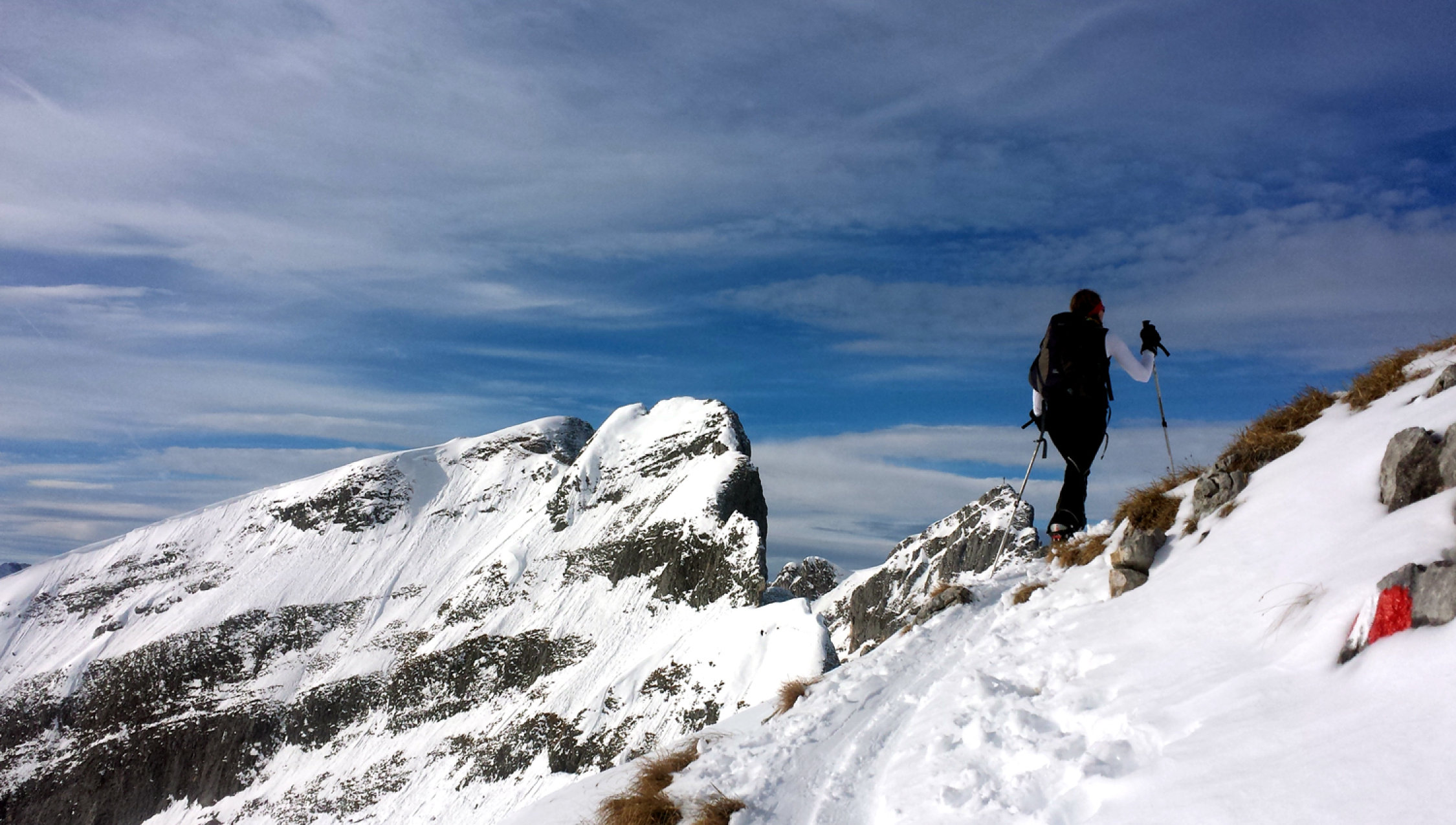 Besonderes: Die Aufstiegspur wurde von den zahlreichen Schneeschuhgehern gründlich umgegraben!!