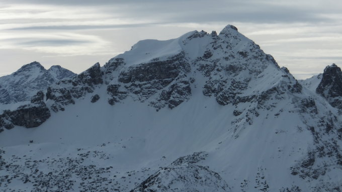 Wärmer als erwartet. Im Wald gab es eine Dusche von den abtauenden Bäumen, inkl. nasse Felle. Weiter oben kurz mal Pulverschnee geschnuppert und prompt stollende Felle eingefangen. Der scharfe Westwind hat oben am Grat einiges an Schnee verfrachtet.