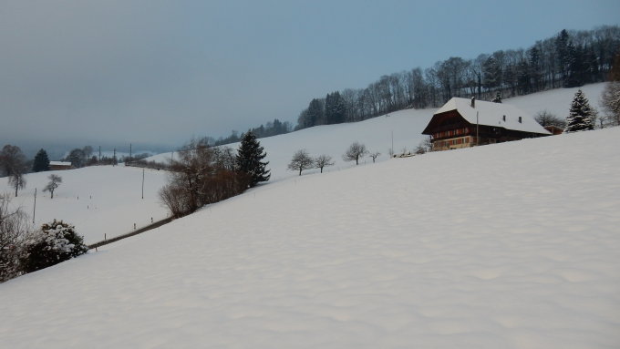 Landschaftlich schöne Tour durch den schön verschneiten Gurnigelwald