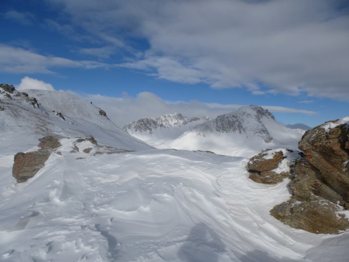 Für Skitour noch zu wenig Schnee, eventuell mit "Steinski" machbar.