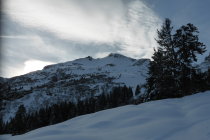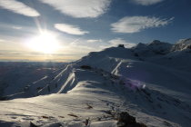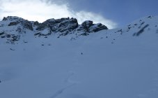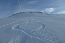 Pulverschnee, in Gipfelnähe ohne Unterlage.