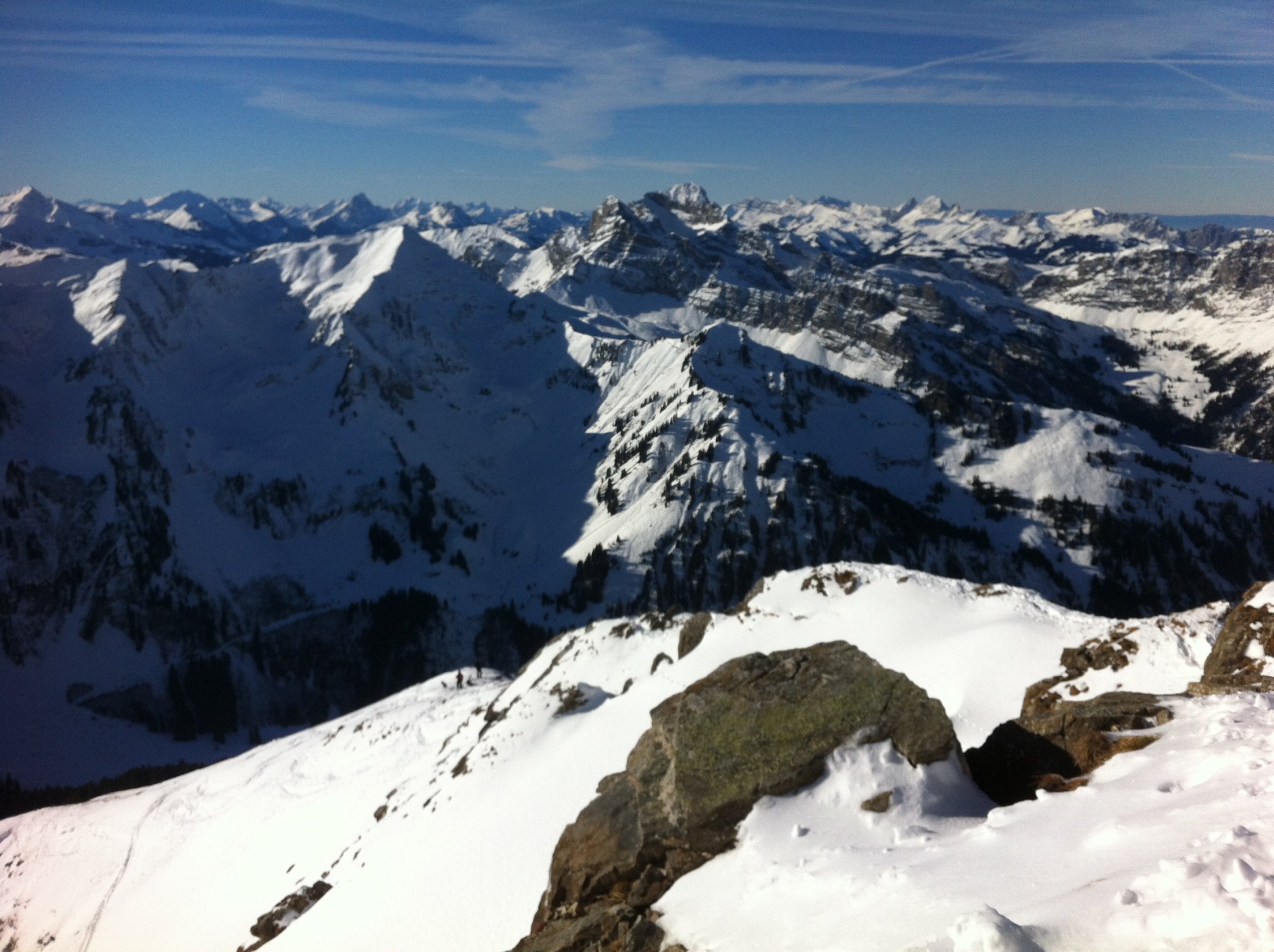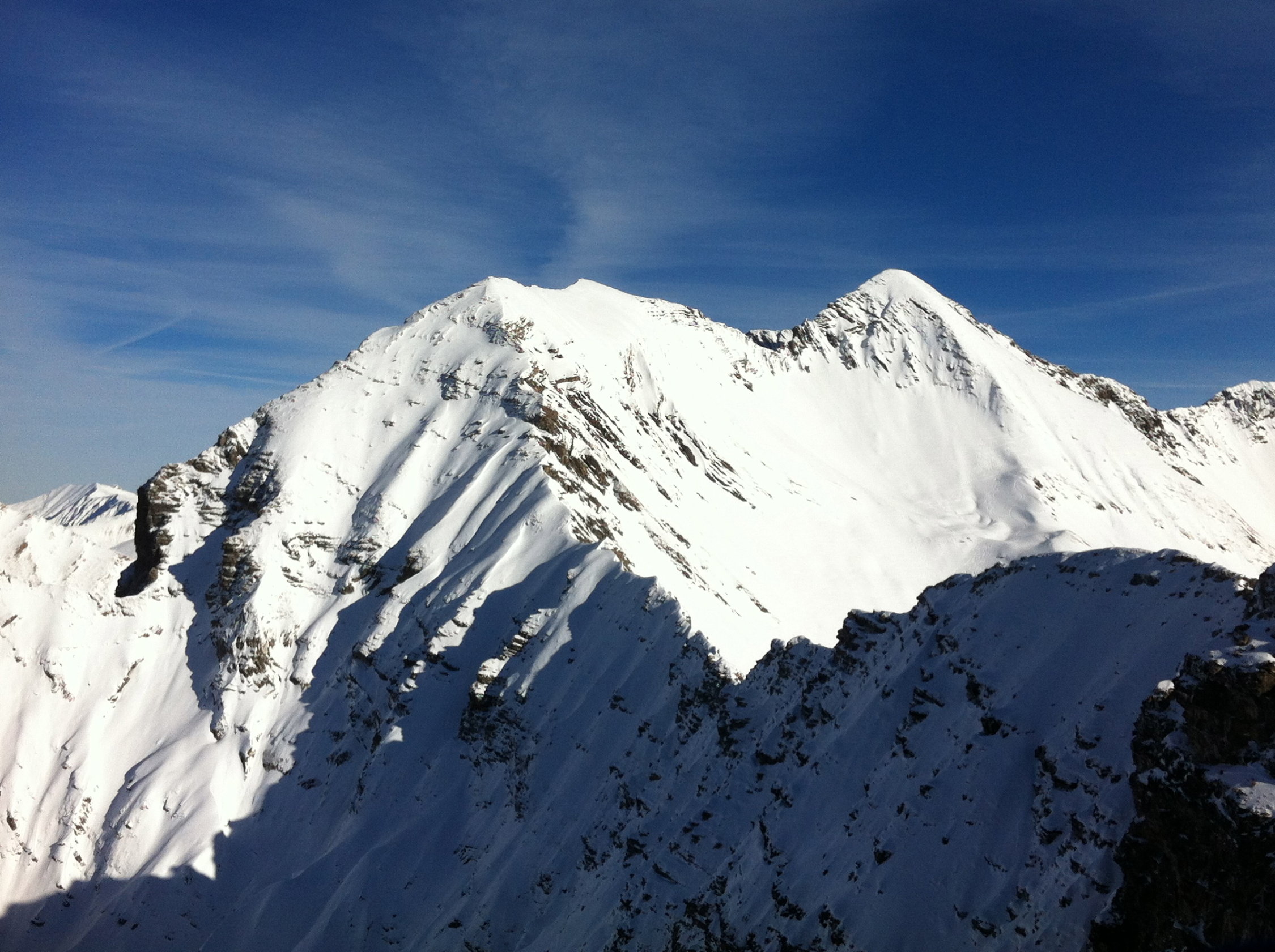 Harte Unterlage mit dünner Pulverauflage, ab Galm (2034) zum Teil gefrorener Windharscht, in der Abfahrt aber in den Rinnen und Tälchen mit Pulverschnee gut zum Umfahren, Steine sichtbar und unterhalb 2000m einfach purer Genuss zum Abfahren. Skidepot Gipfel leicht zu begehen: Trittschnee
