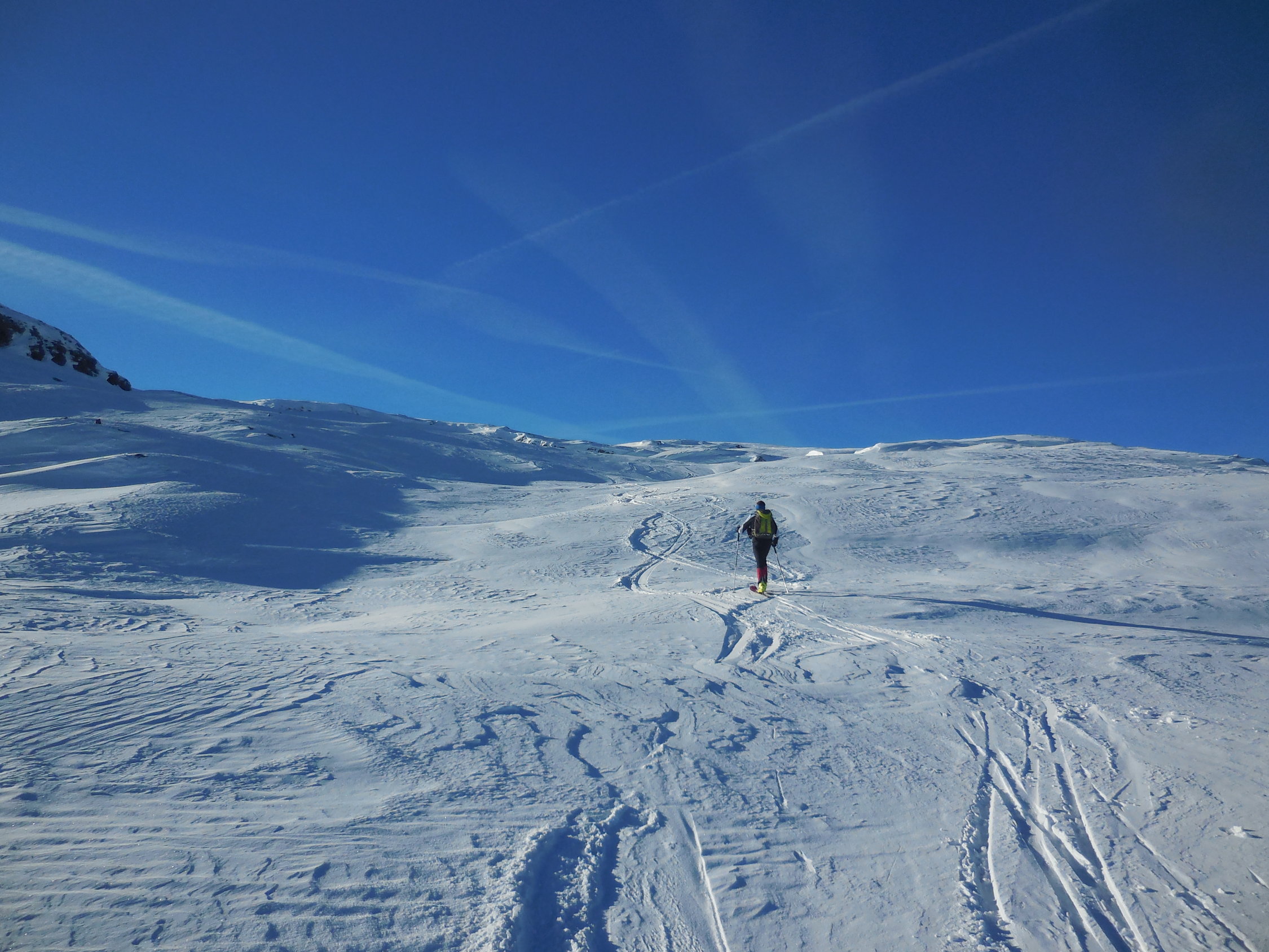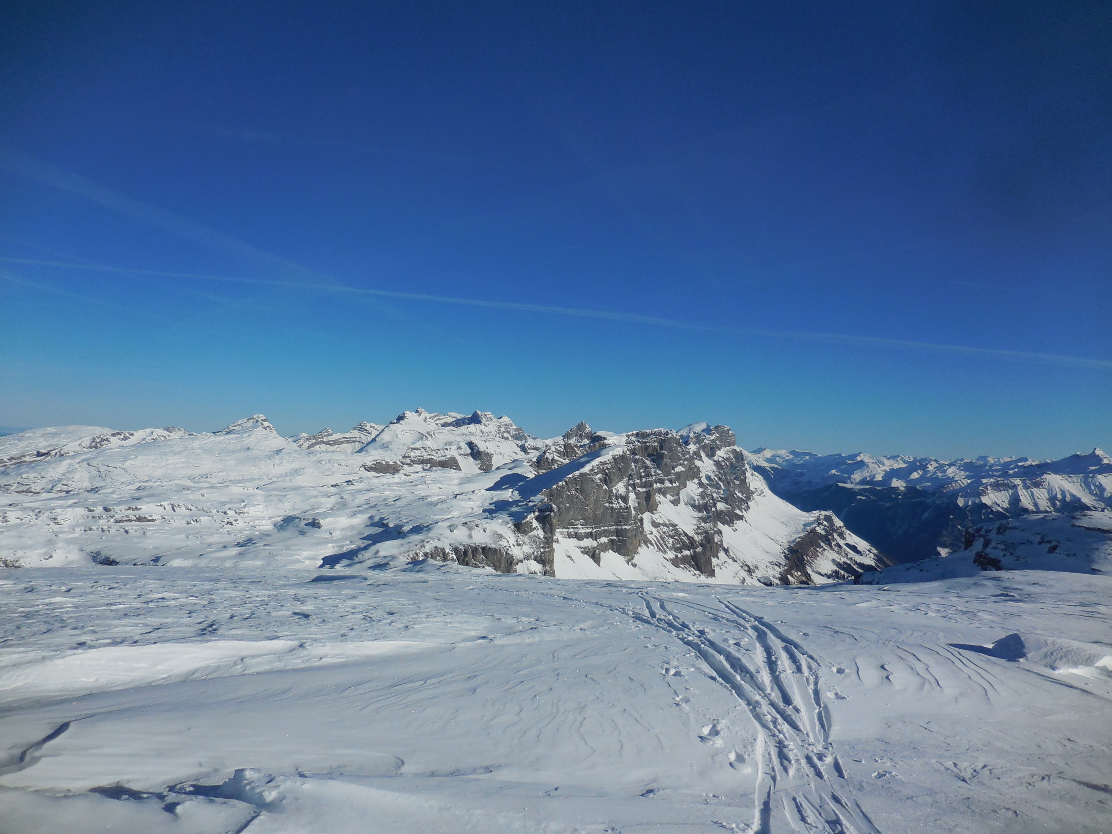 Start am 6.45 Uhr im Sahli bei - 1 Grad, durch den Ruosalplerwald war die Aufstiegsspur recht rutschig, ab Ruosalp dann recht gut, ab Oberstafel dann perfekte Verhätnisse 5-10 cm Pulverschnee auf harter Unterlage, Abfahrt Läckistock zuerst noch gute Verhältisse, ab Firnerloch dann viel Windverfrachtungen zum Läckistock aber mit guter Routenwahl gut machbar, Abfahrt Läckistock zum Firnerloch mal gut mal schlecht.