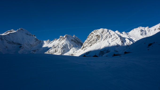 Heute waren recht viele Leute unterwegs, sodass die Pulverhänge jetzt meist verfahren sind.