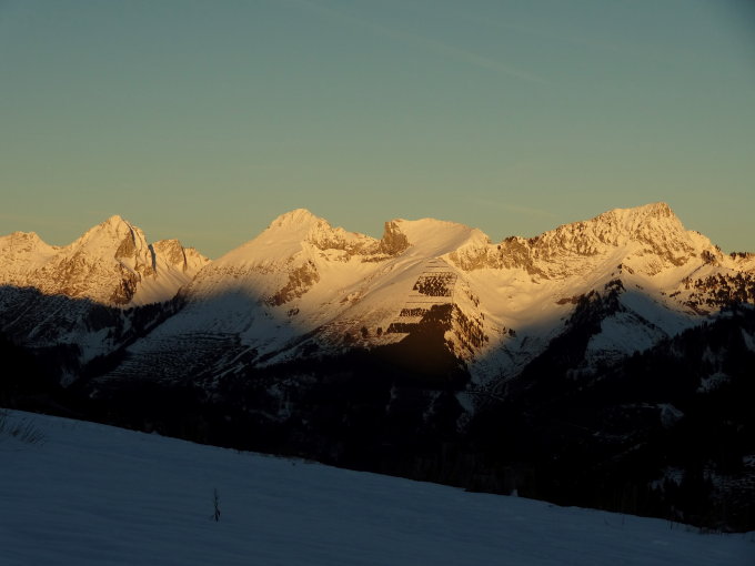 Diese Tour ist ein Schneeschuklassiker. Technisch leicht, mit moderaten Ansprüchen an Kondition und von landschaftlicher Sonderklasse. Dreht man sich um die eigen Achse, sieht man Berge in aller Farben und Formen. Diese Tour ist meistens gespurt und sehr beliebt. Ist auch für Anfänger ideal weil, bis zum Hundsrügg, das Zurückzugehen eigentlich problemlos ist.