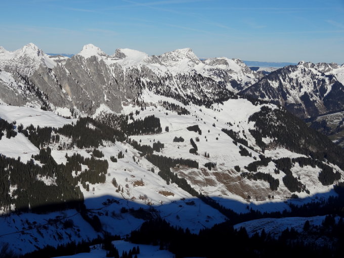 Die Steilhänge vom Grat aus Richtung Abländschen sind geladen und aus diesem Grund ohne Spuren.