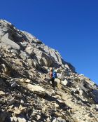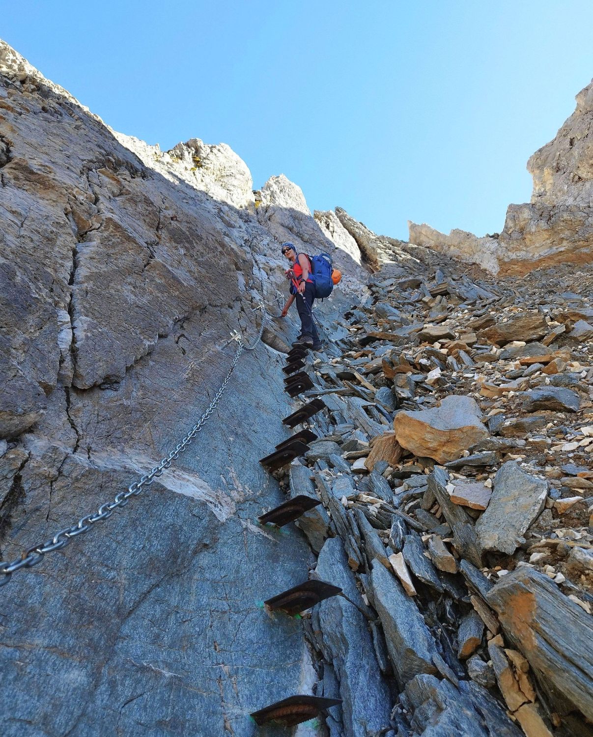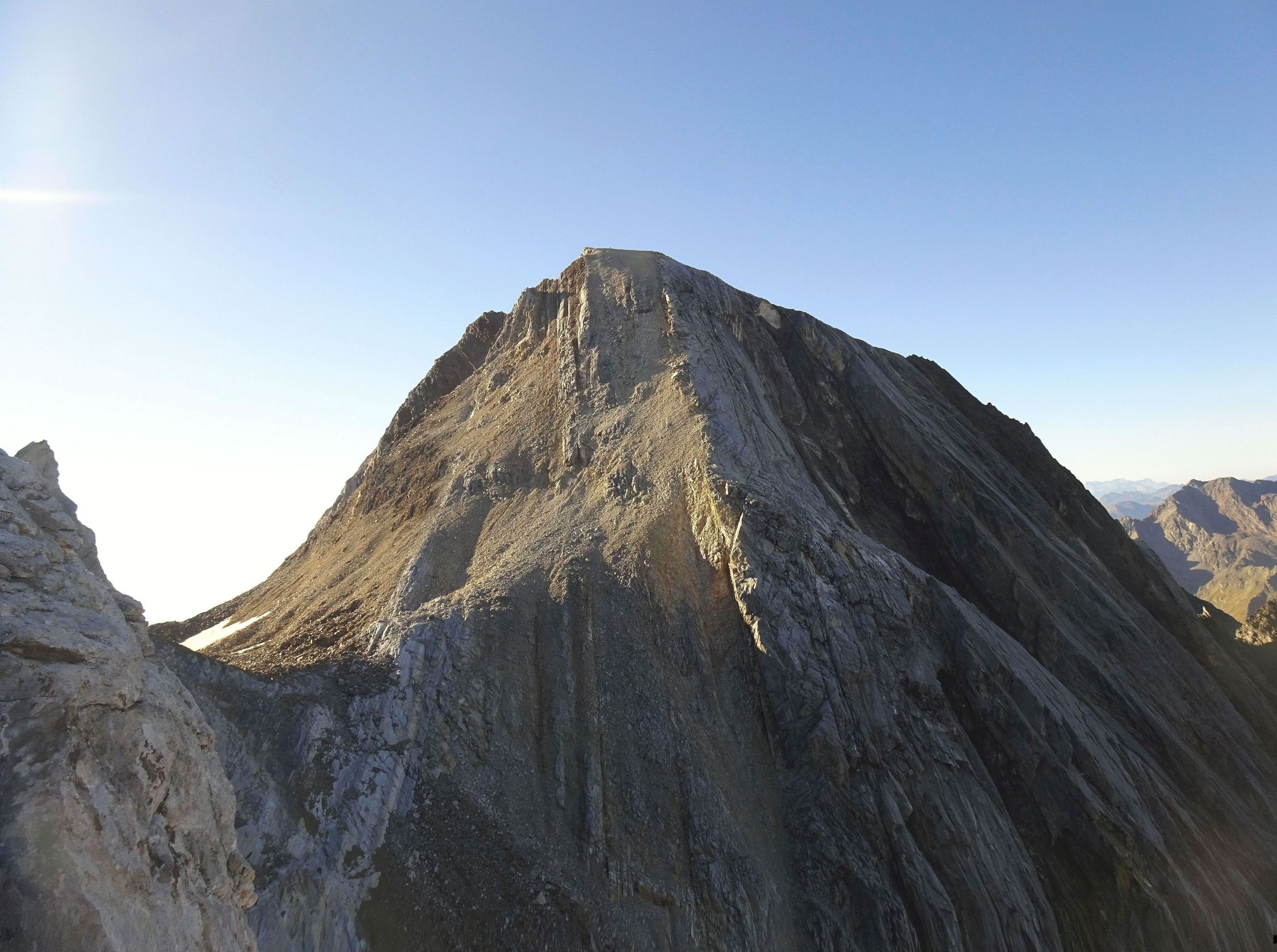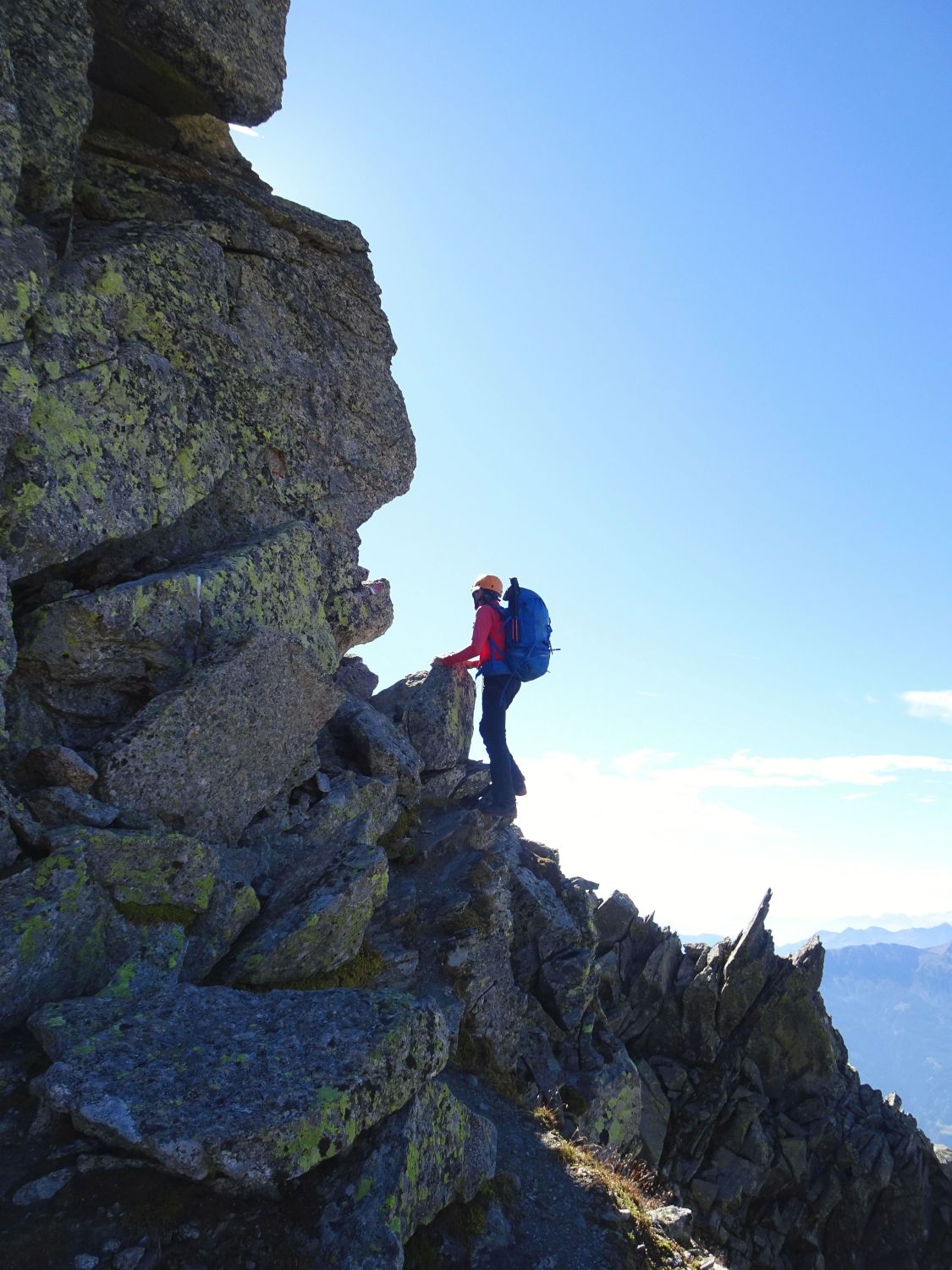 Alles trocken und schneefrei, Fels griffig und relativ fest, teilweise geröllig. Wetter Do./Fr. hochsommerlich warm mit guter Fernsicht, Sa. kühler und windiger, aber auch sehr schön, und So. viele Quellwolken mit etwas Sonne dazwischen.