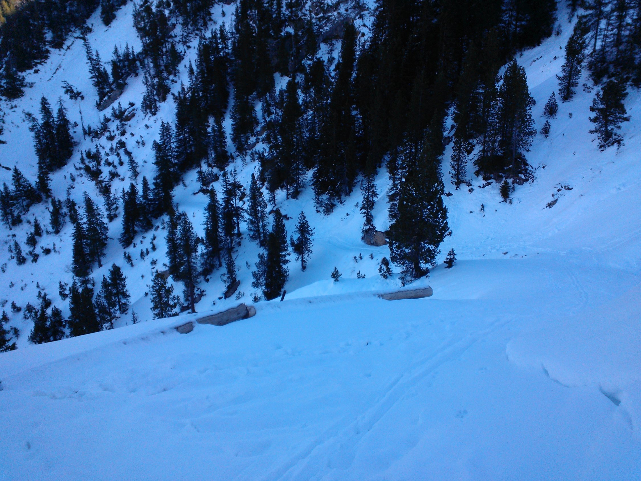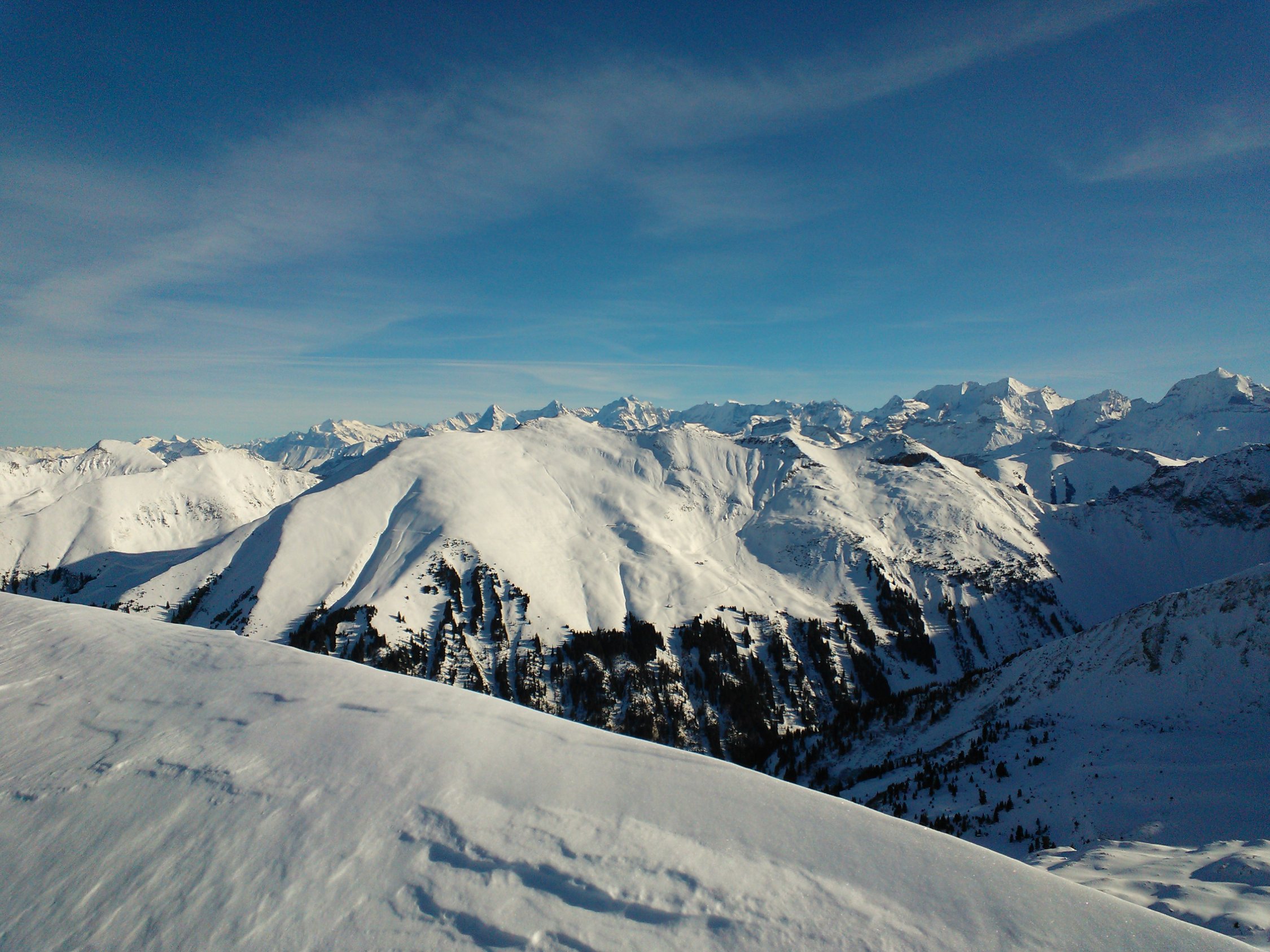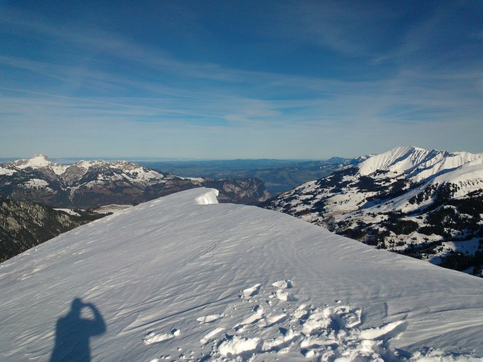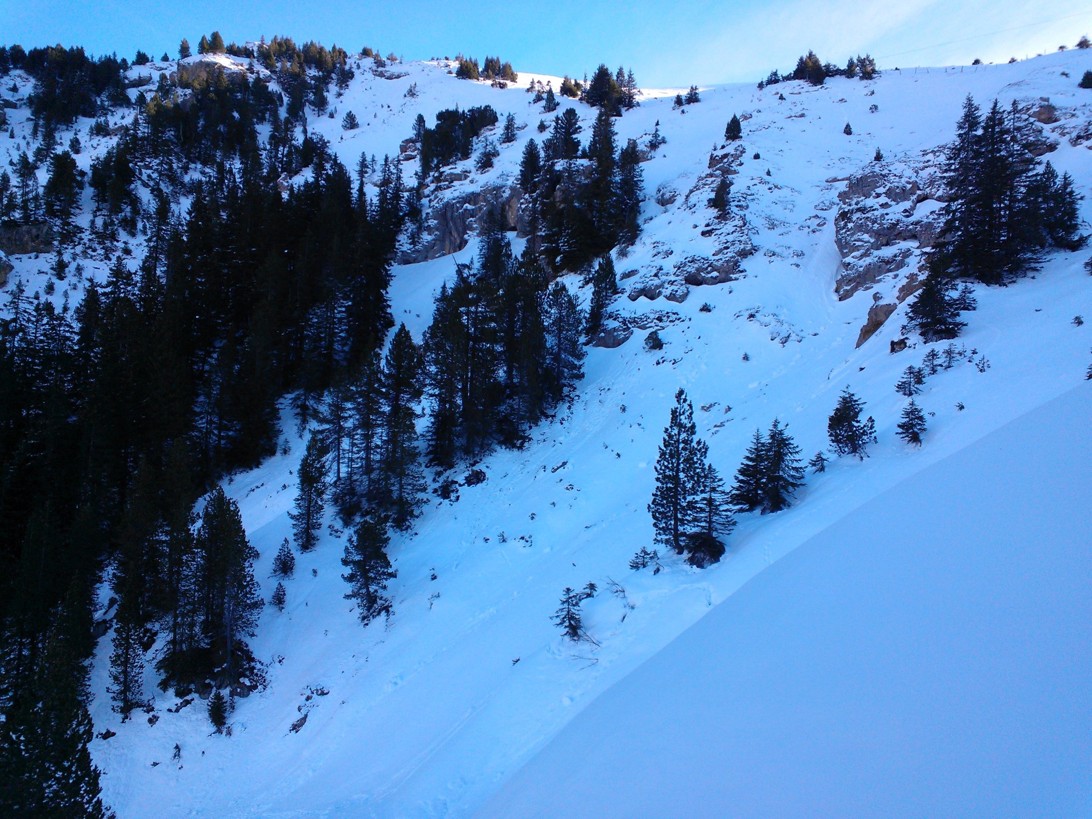 Bei der Anfahrt ins Diemtigtal sah ich, dass die Skilifte am Wiriehorn nicht laufen. Das war die Gelegenheit, diesen Gipfel vom Riedli aus zu begehen, wo er mehr Höhenmeter offeriert! Daher bei Kaiserwetter los, links der Piste hoch. Schnee grad ganz knapp bis unten, wobei: auf der Piste eher Eis statt Schnee. Ein Ratrac bemühte sich, die Sache wieder fahrbar zu machen. Dann weiter bis zum Sattel oberhalb Bodenfluehütte, und von dort via Sommerweg zur Alp Wirie. Diese Route hat den Vorteil, dass man den Steilhang umgeht und vor allem, dass man bei der Abfahrt den ganzen statt nur den halben Schlusshang fahren kann! Sommerweg muss aber lawinensicher sein (siehe Foto). Der Schlusshang war vom Wetter gestaltet, Eisblattern wechselten mit Pulver. Im Aufstieg waren mir die Harscheisen daher wertvoll. Schöne Gipfelrast, war ein netter Thuner Tourengänger oben. Noch zwei Leute im Aufstieg, das wars. Abfahrt: Der Schlusshang war oben pulvrig gut, Mitte wegen des Wechsels Eis-Pulver naja, unten sehr gut. Dann wieder via Sommerweg zur Bodenflue, dort war es super, bisschen Pulver auf harter Unterlage. Und auf der Piste hatte der Ratrac das Eis in einen schönen Teppich verwandelt, das war Klasse. Alles in allem sehr schön.