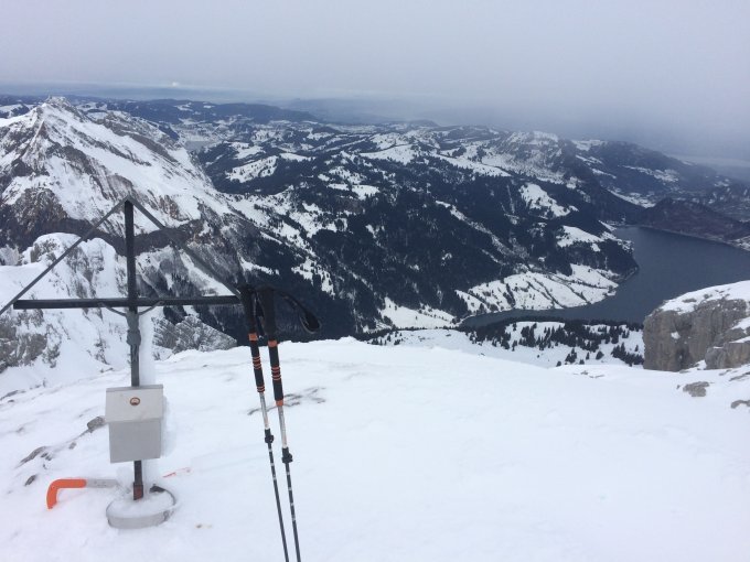 Start 9:30 h am See. Wählte nicht den steileren Weg über Chruter wegen Schneemangel im unteren Bereich, sondern den etwas weiteren Weg über Ober Boden zur Rinderweid. Alles zerfahren und bretthart. Teilweise vereist, meist z.T. mehrere cm dicker Bruchharsch (dem Regen sei dank...). Trotzdem ging es ohne Harscheisen ganz gut bis zum Gipfel. Dort leider kalt mit Wind und ohne Sonne. Abfahrt dann auf der Aufstiegsroute (da ich mir nicht sicher war wieviel Vergnügen die NW-Abfahrt mit dem Bruchharsch geben würde...). Im oben Teil gut zu fahren bei harten, pistenähnlichen Verhältnissen. Zwischen dem Rettungsschlitten am Grat bis etwa Mutteri (1660m) sehr mühsam zu fahren wegen des wirklich unangenehmen Deckel. Weiter unten war der Schnee dann etwas aufgeweicht und das Abfahren deutlich leichter. Man kommt ohne Abzuschnallen gut zurück bis an den Parkplatz bei entsprechender Umsicht und Vorsicht. Die Schneedecke unterhalb der Rinderweid ist sehr dünn. Insgesamt also ist die Tour machbar momentan, wahrscheinlich aber eher für aufstiegsorientierte Tourengänger interessant. Die Abfahrt ist nicht lohnend.
