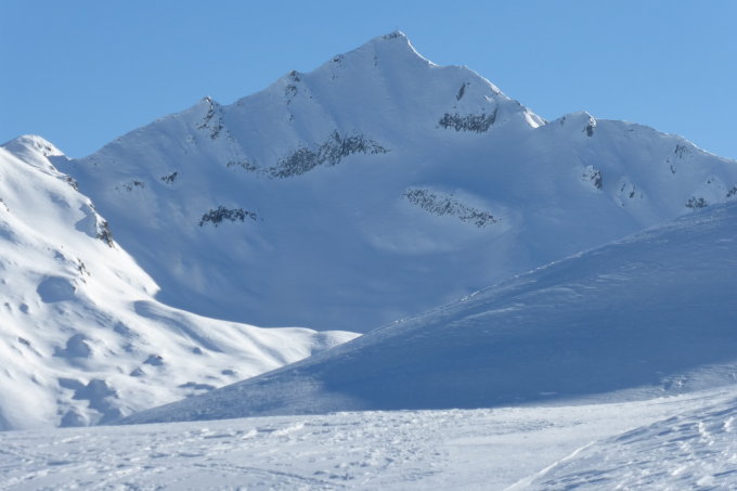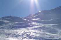Aufstieg vom Stelliboden zum Schijenboden Pulverschnee mit Windgepressten Stellen.