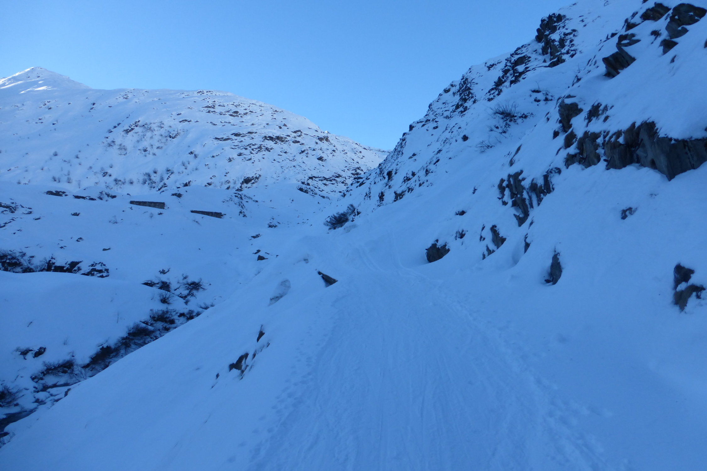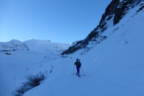 Die Route über Oberchäseren hat den Vorteil, dass man länger in der Sonne läuft. Zudem war die Spur sehr gut angelegt, und der Südhang stabil.