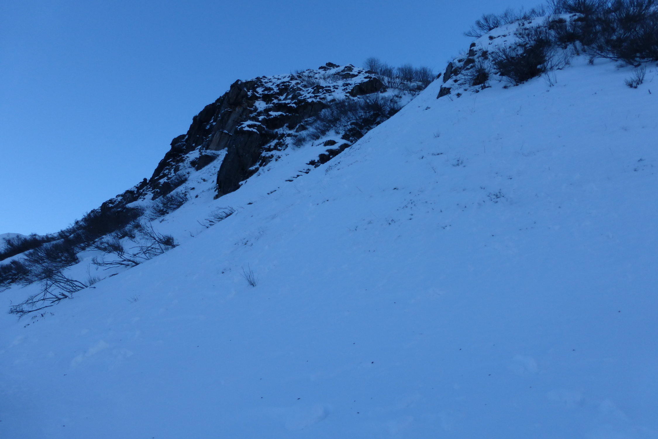 Aufstieg auf griffiger harter Unterlage. Die Osthänge im Vorder- und Hinterschweig sind stabil. Die grosse Lawine im Hinterschweig ist unten.
