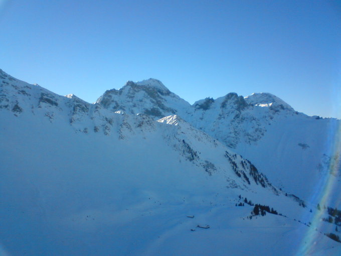 Es hatte auch Leute auf dem Landvogtehore, auf dem Winterhorn, Drümännler. Abfahrtsspuren vom Vortag an der Südwestflanke der Männliflue (Direttissima). Um dort angenehm den sehr steilen Hang runterzufahren hätte man wohl warten müssen bis die verkrusteten Spuren und die Wärmekurste etwas aufgeweicht gewesen wäre.