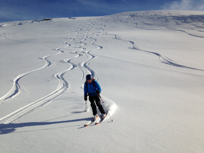 Oben 15 cm Pulver, unterhalb 1600 m tragender Hartschnee. Praktisch keine Verwehungen. Die angetroffenen Verhältnisse sind als gut zu bezeichnen. Sonnenschein pur.