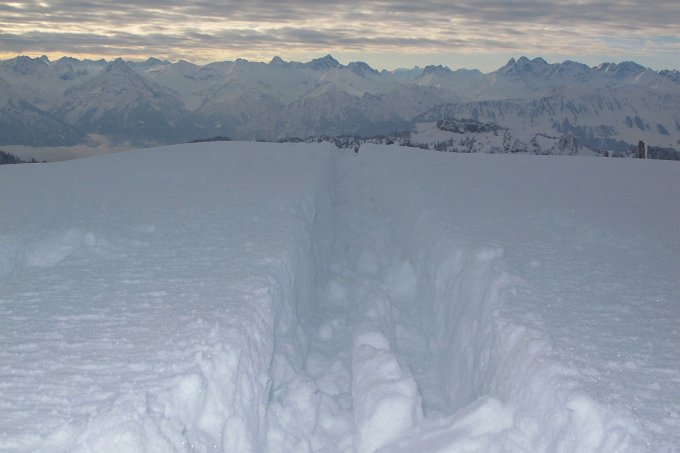 Für das Betreten des Wildschutzgebietet auf der Westseite des Riedberger Horn ist sogar ein Bußgeld fällig. Nur ist das ganze wohl nicht so wichtig. Im Zuge der geplanten Verbindung der Pistenskigebiete Grasgehren und Balderschwang soll eine neue Skipiste genau durch ein amtliches Wildschutzgebiet führen. Wenn das heute ein Tourengeher machen würde, wäre ein Bußgeld fällig und er würde als ökologischer Rambo hingestellt. Wenn in ein paar Jahren abends in der Dämmerung die Piste gewalzt wird, ist es ok.