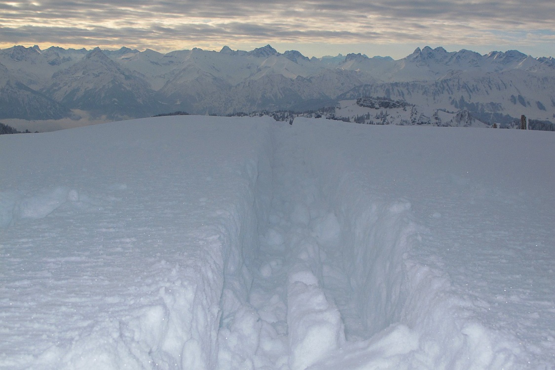Wechselhafte Schneeverhältnisse. Harsch- mal tragfähig, mal brüchig, dazwischen auch wenige cm Pulver auf harter Unterlage. Bolgental hart und eisig. Flachstücke laufen gut.