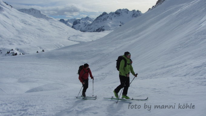Verhältnisse am Piz Daint, heute leider schlechte Sicht, alles verblasen, Hänge schwer einsehbar und "Wumm" Geräusche.