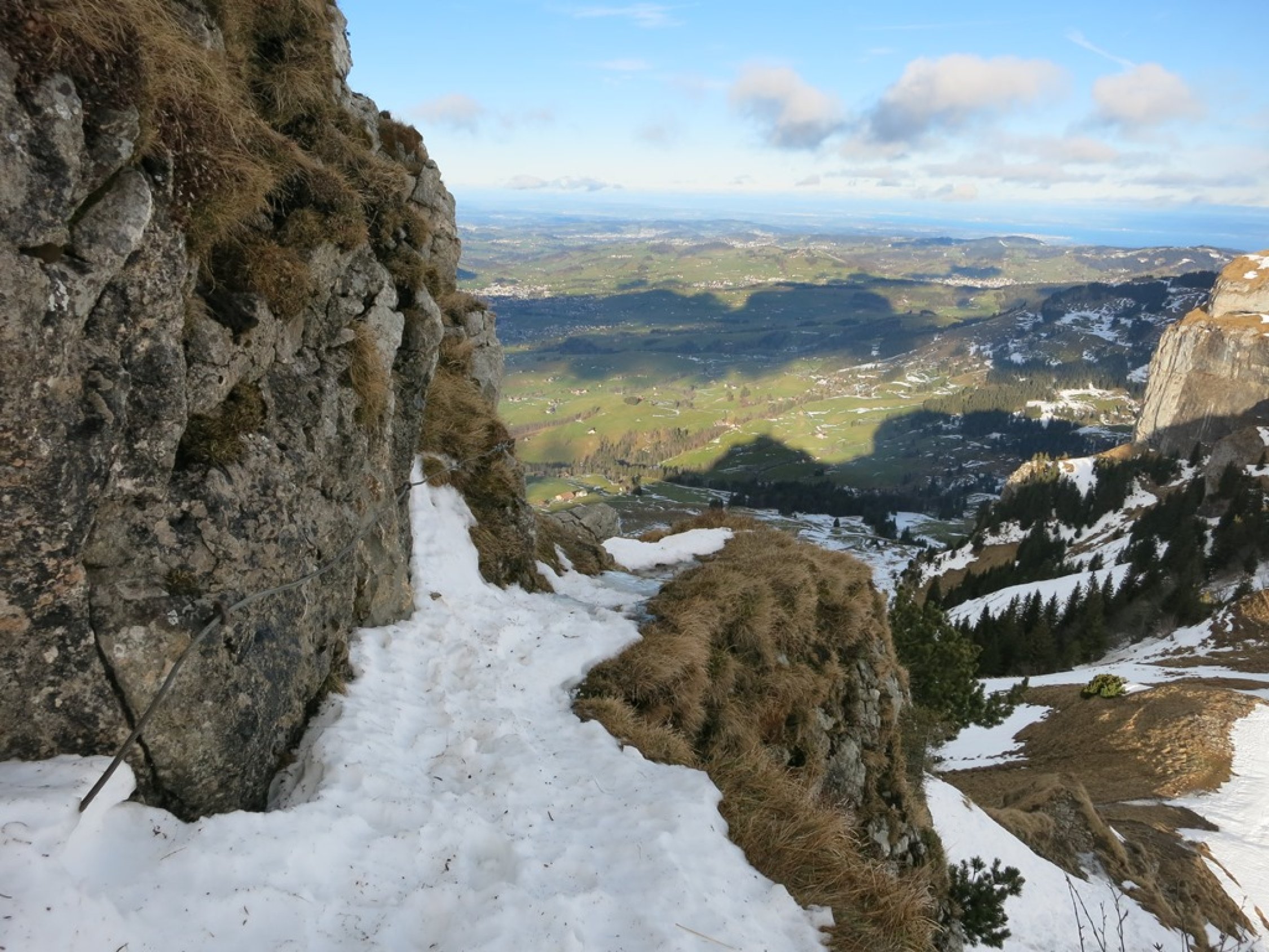 Aufstieg am Schluss über Chatzetöpli ist besser als Weg unter NO-Wand; hat weniger Schnee und die Stahlseile sind praktisch schneefrei...