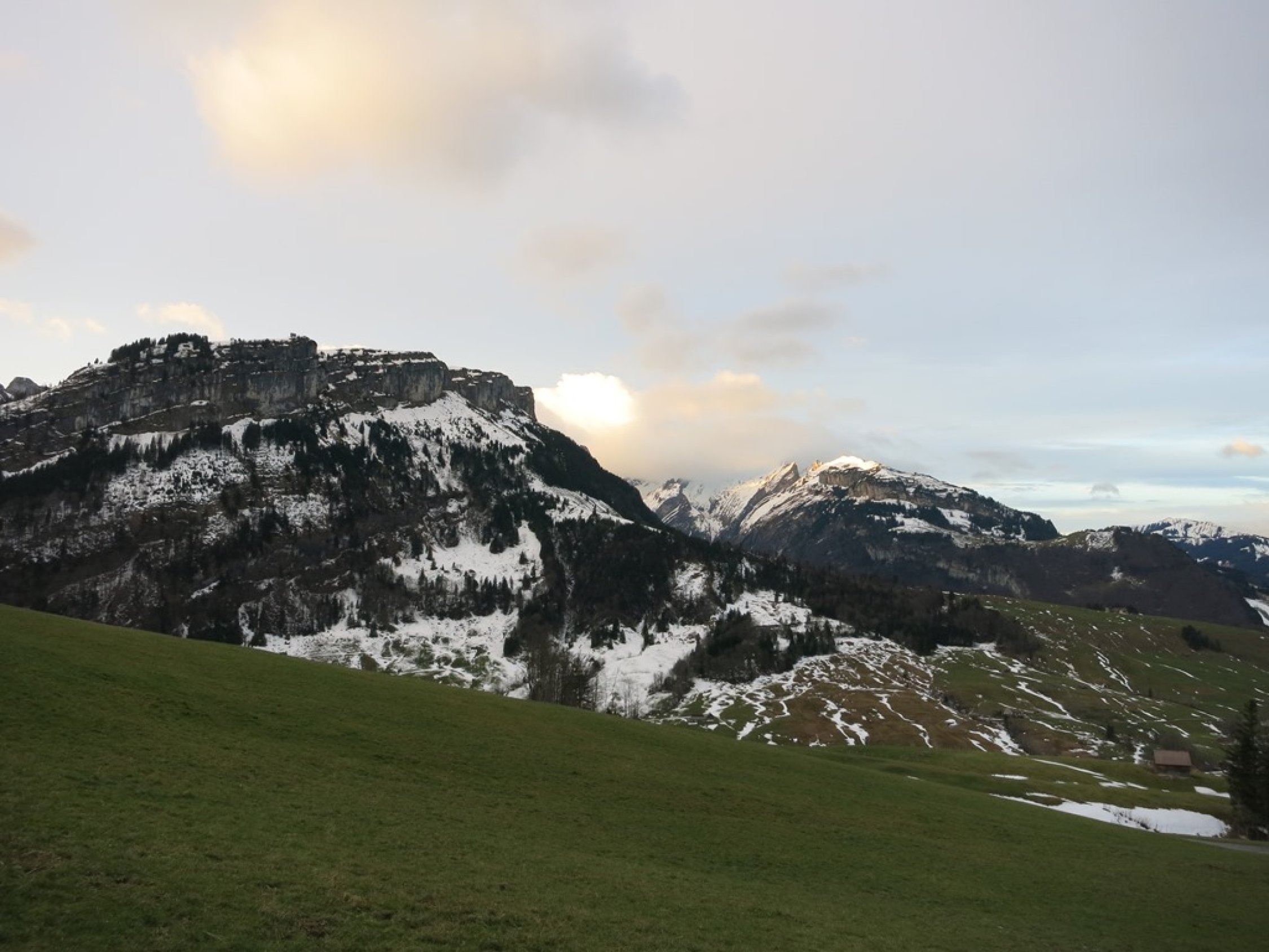 Habe im Aufstieg die "Gras-Steigeisen" benutzt, so konnte ich dem weichen Schnee ausweichen und die steilen Grashalden hochgehen...