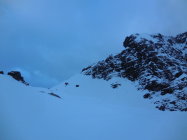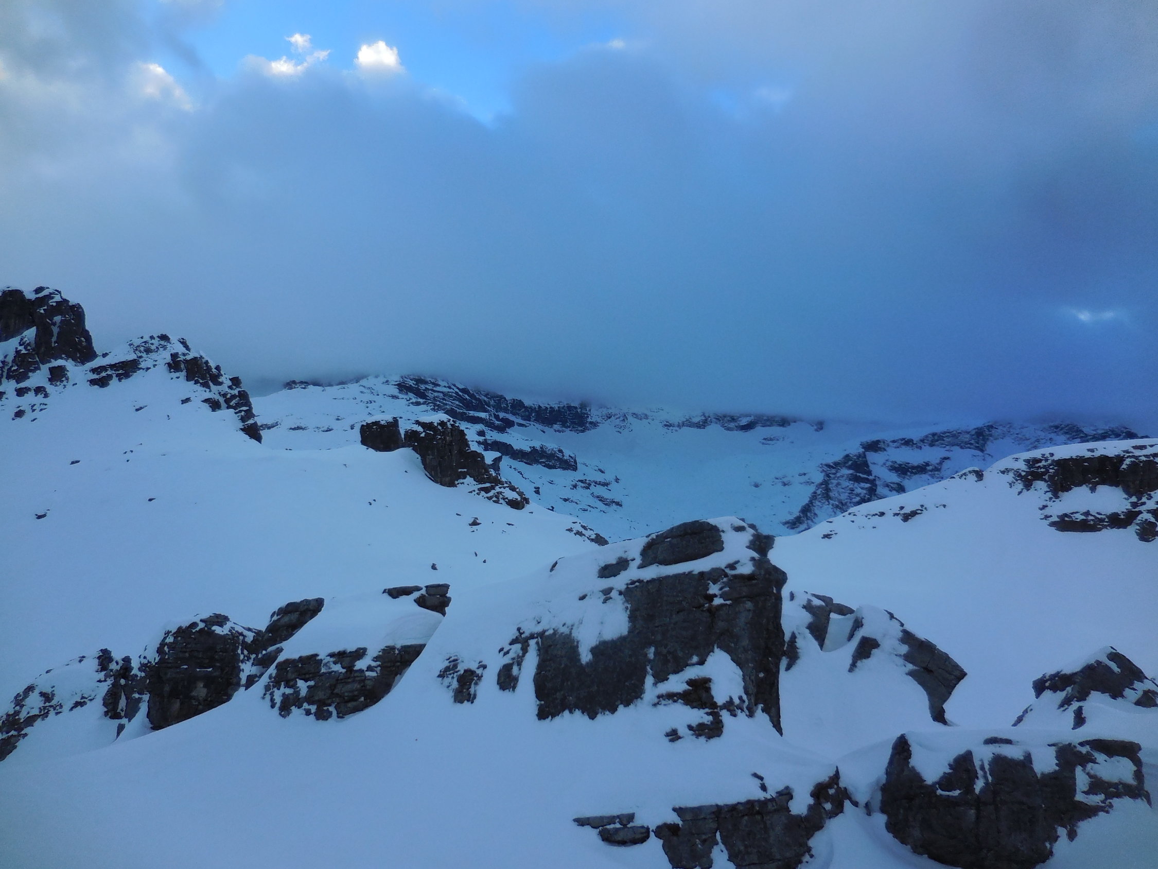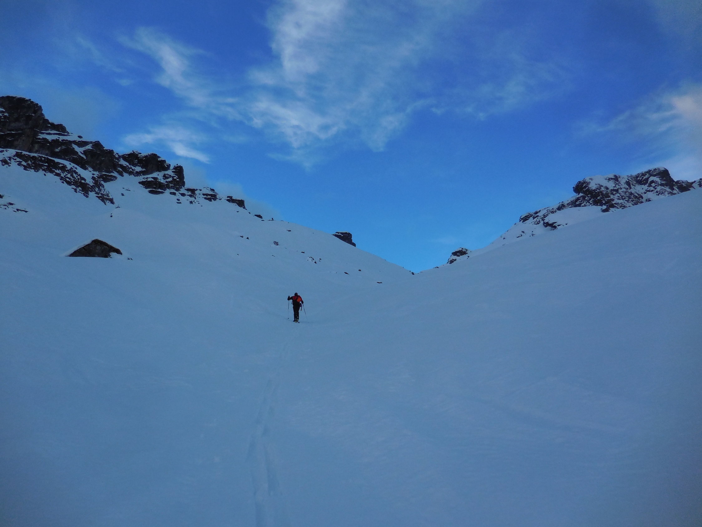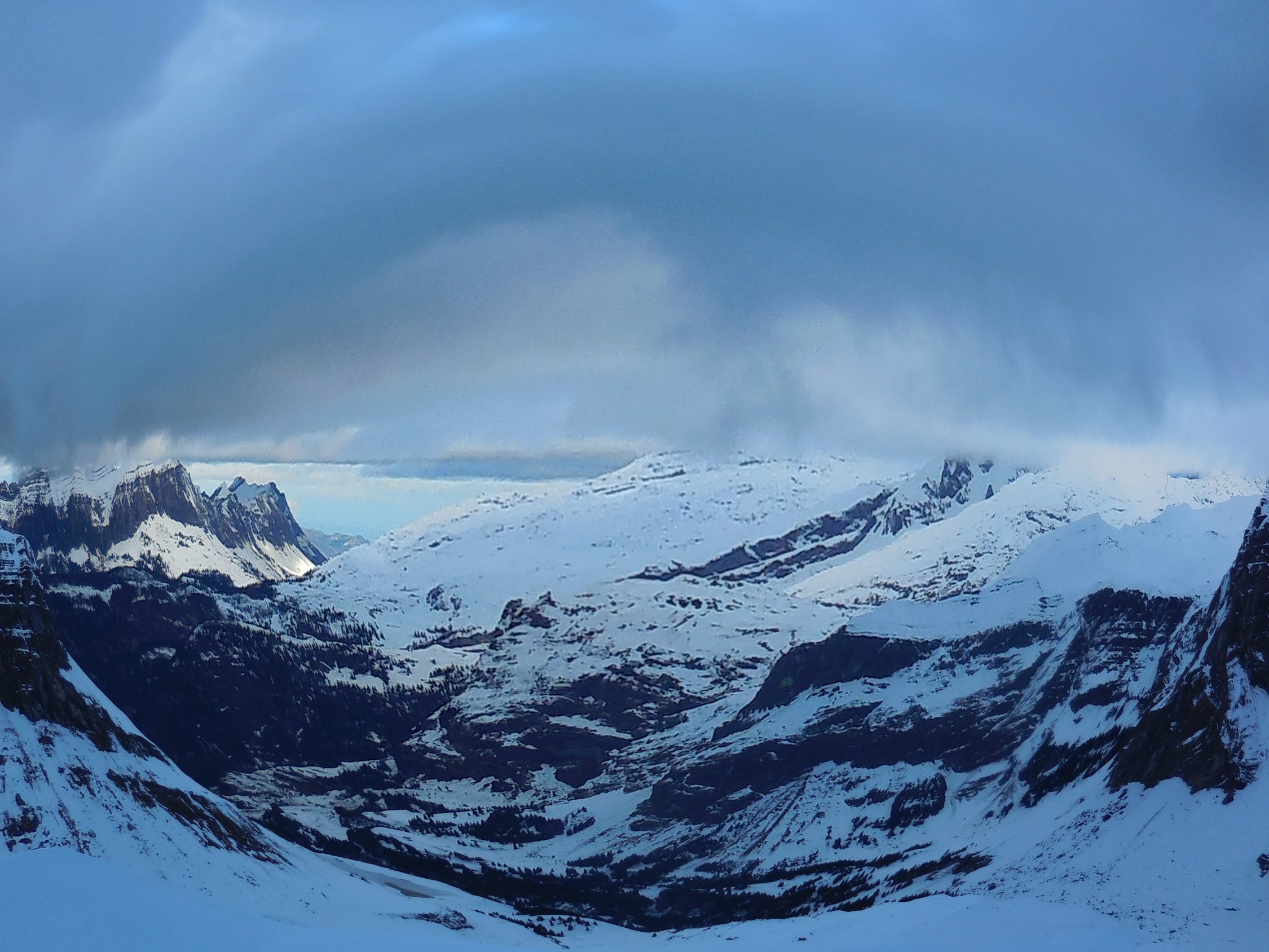 Start am 7.30 Uhr im Sahli bei letzten Regentropfen, durch den Nassschnee in Richtung Ober Stafel, ab da wehte zeitweise ein starker Westwind, es musste wieder neu gespurt werden. Abfahrt wie im Frühling bei Mittag, nich wie Hochwinter, ab Ober Stafel dann gut zum Abfahren, die ersten Steine kommen schon wieder von ihrem Winterschlaf heraus.
