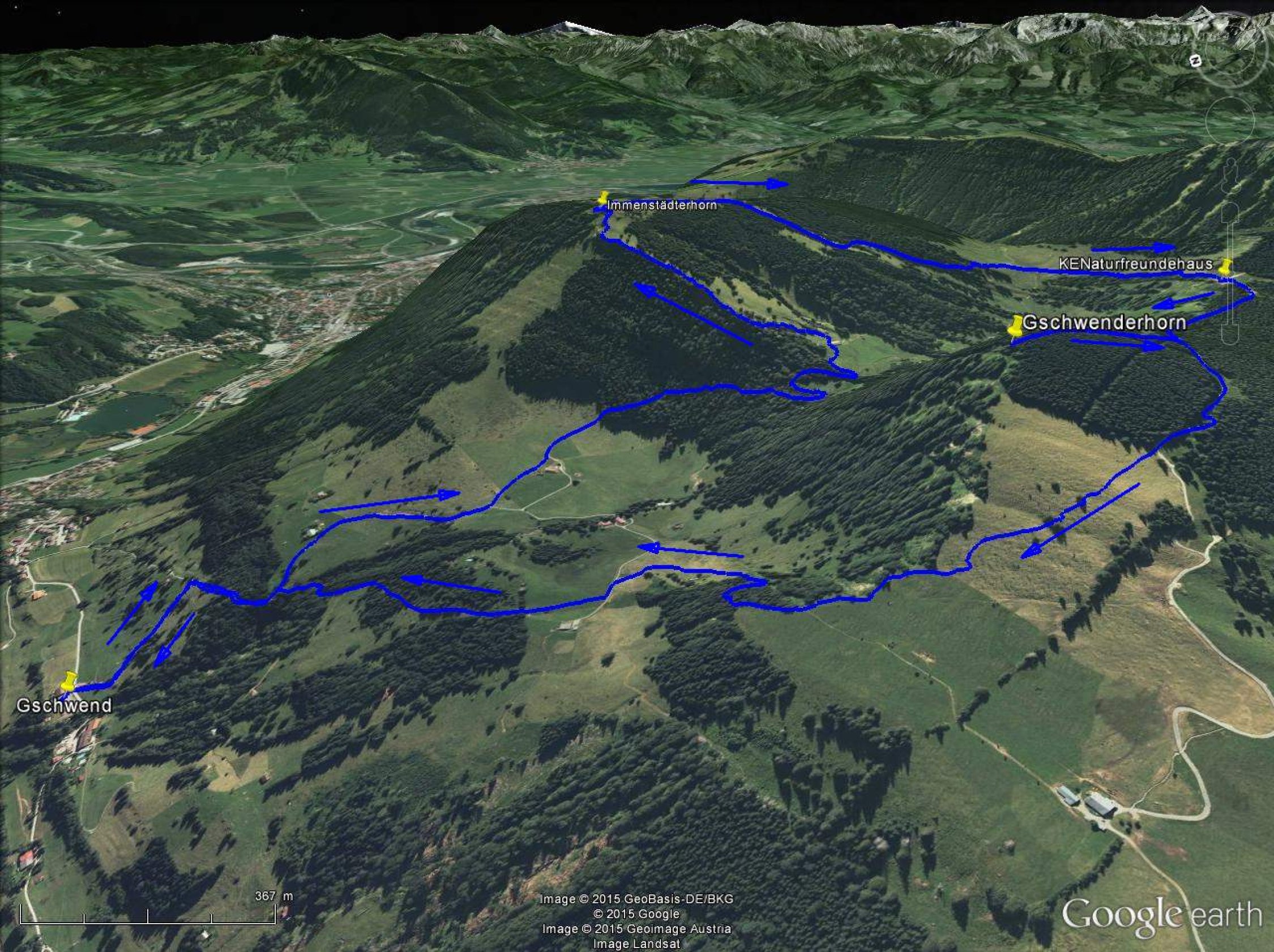 Gschwend - Rabennest Alpe - Kessel Alpe - Immenstädter Horn - Alpe Alp - Kemptner Naturfreunde Haus - Gschwendner Horn - Gschwendnerberg Alpe - Gschwend Vorbemerkung: Normaler Weise zu dieser Jahreszeit: Schneeschuhtour, doch in diesem "Winter", ne "alpine Wanderung"
