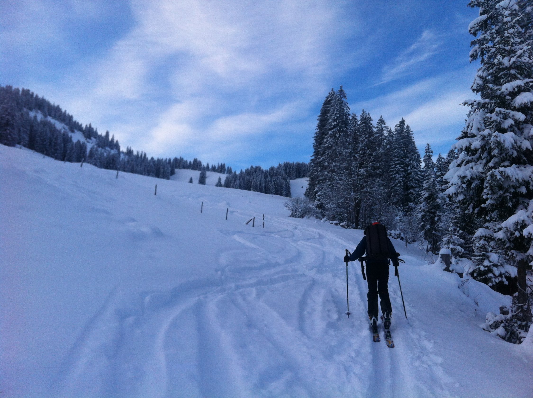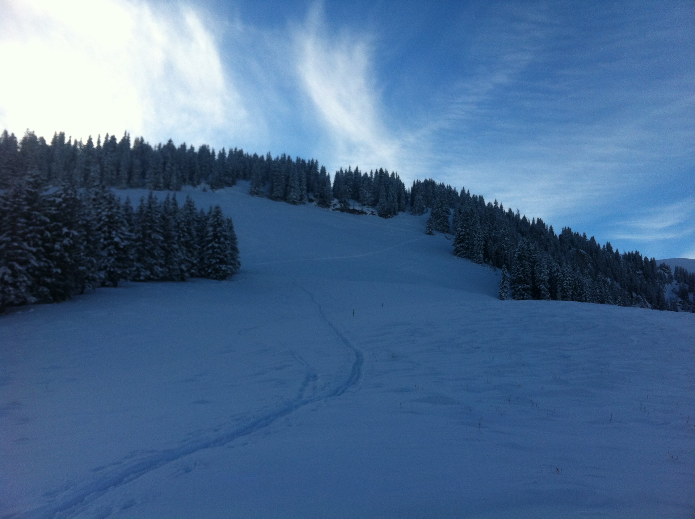 Es hat geschneit! Viel hat es hier aber nicht gegeben. 15-20 cm, dafür feinster Pulver von oben bis unten. Es hat an den meisten Orten nun einen gute Unterlage. Im Moment also nicht schlecht.