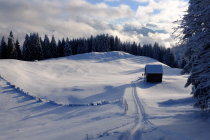 allerbeste Tourenbedingungen, 20 cm Neuschnee (und zwar vom feinsten) von Vermol bis auf den Gipfel. Route führt durch frisch verschneiten Winterwald.