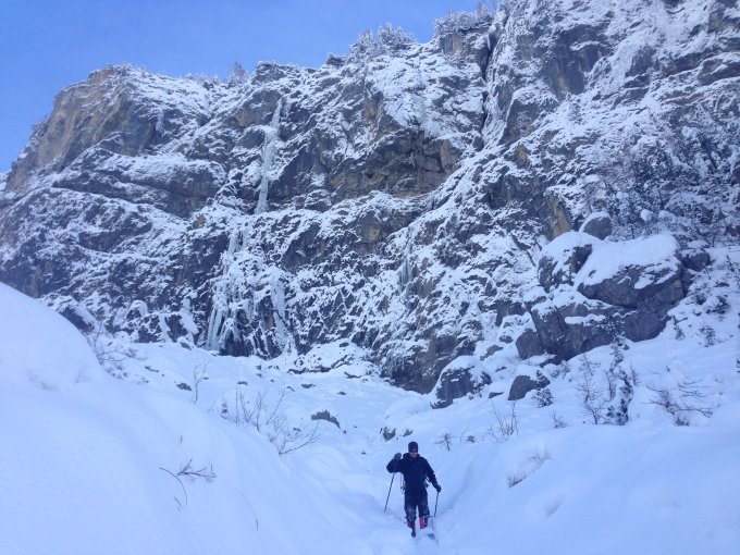 Das Eis steht noch... Recht viel Schnee in der Route. Das Eis hat sich von der Wärmeperiode schon recht gut erholt. Viel Blumenkohleis - schwierig zum Absichern.