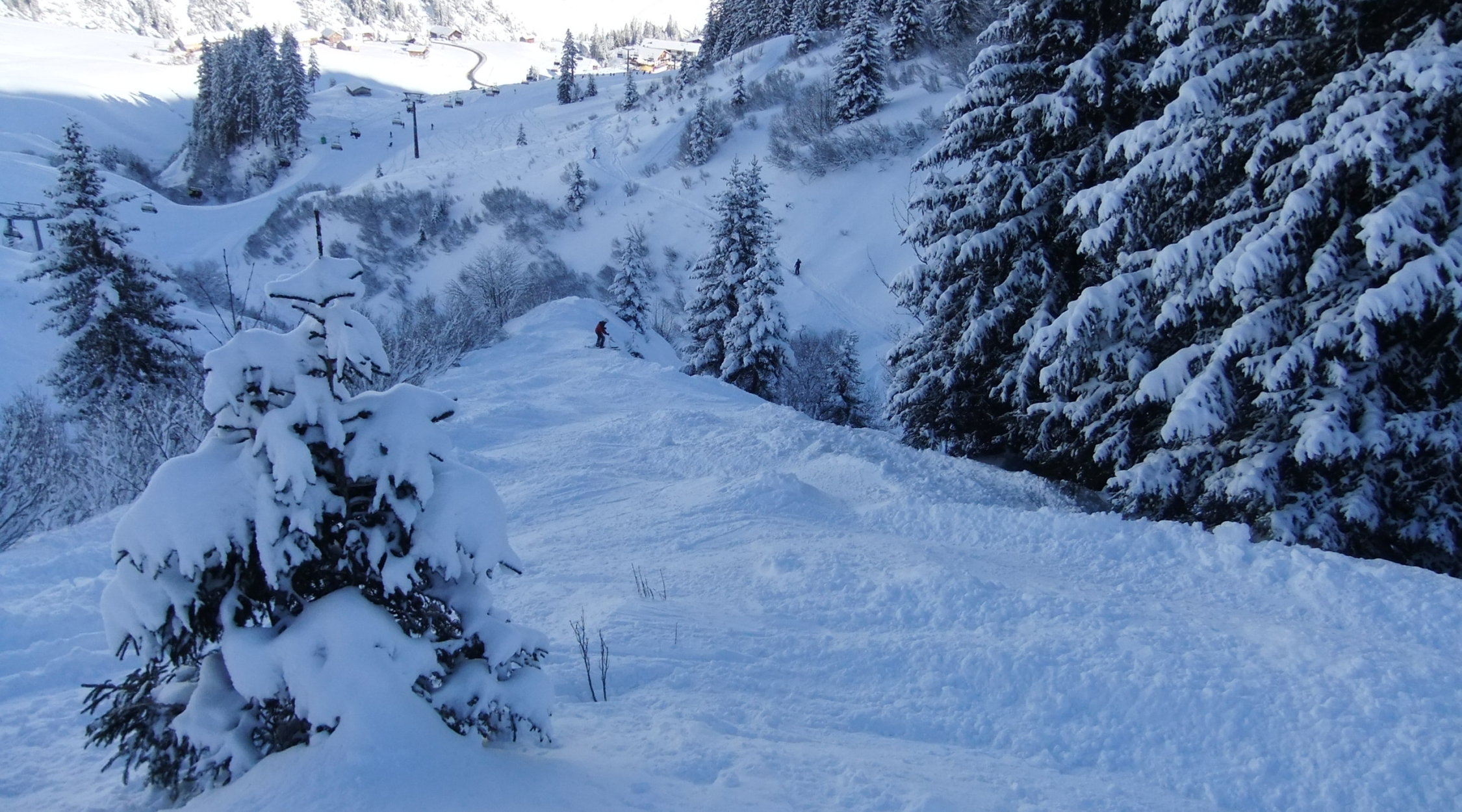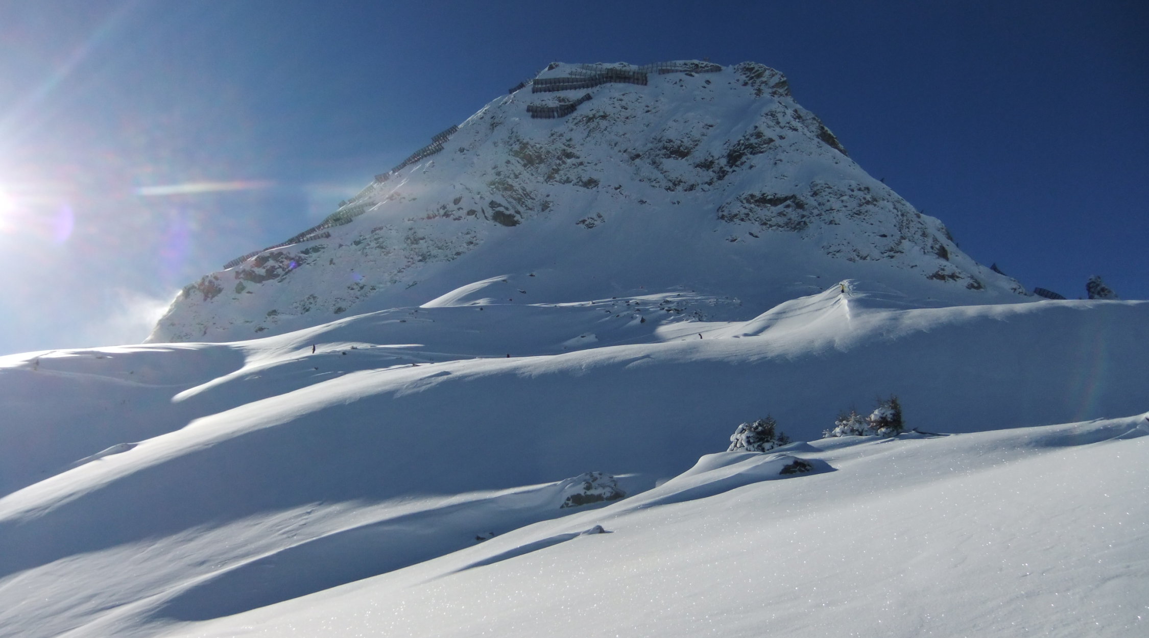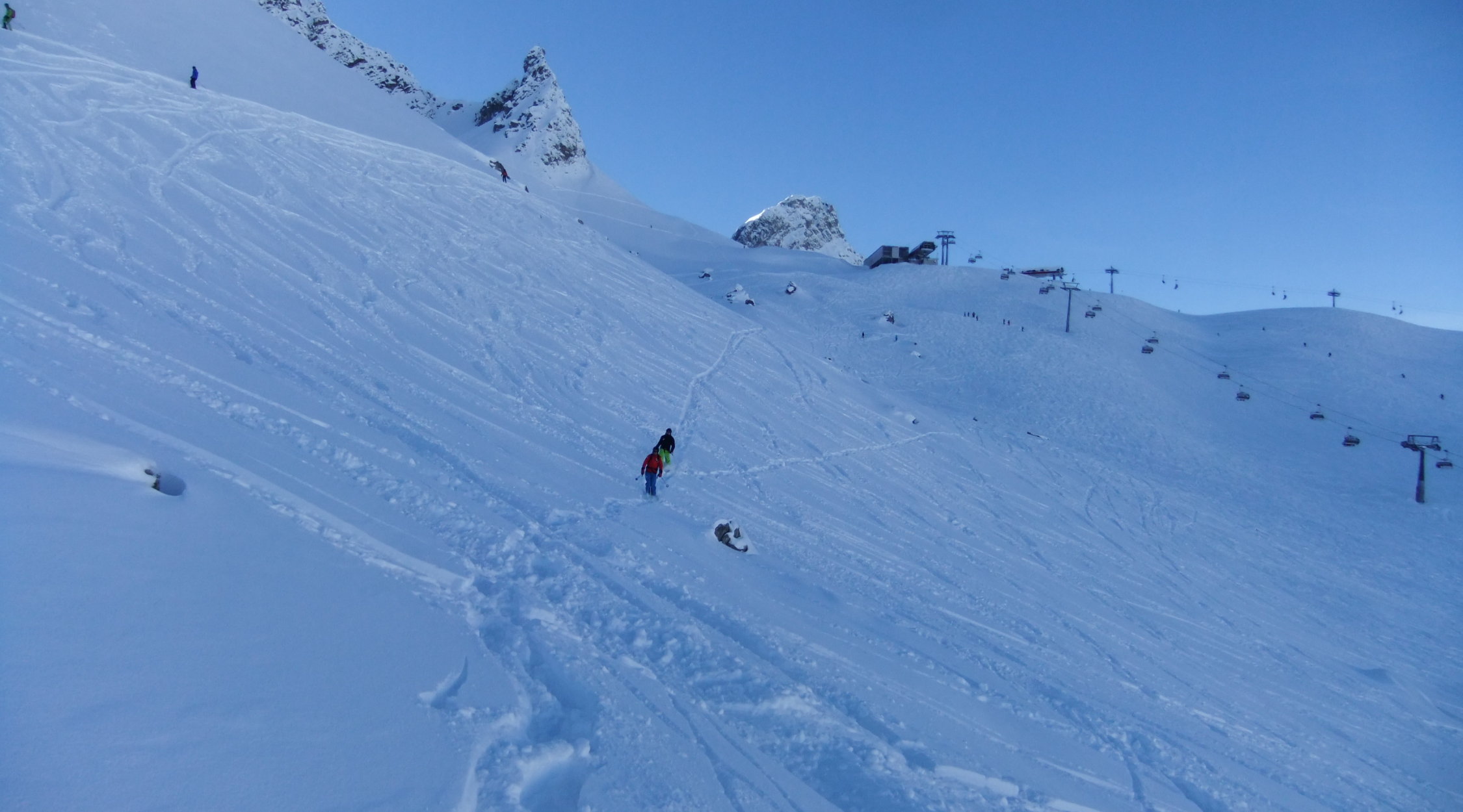 Da noch eine Pistenraupe auf der blauen Piste zugange war, die 25 cm Neuschnee von gestern und heute Nacht zu planieren, lief ich über die schwarze direkt hinauf.