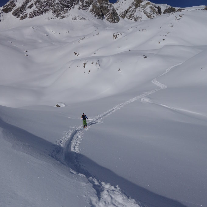Aufstieg gut gespurt vom morgen(danke).abfahrt ab tennbachlücke noch firstline in oberhammerpuder,nur in culi etwas wind.kein steinkontakt bis alp runter.ab alp tellin dank schneeschüler ohne stöckle bis erster weiler.da strasse gesplittet leider noch 15-20min.fussmarsch bis blatten.