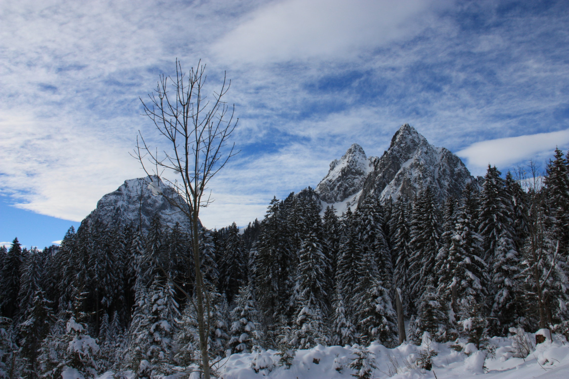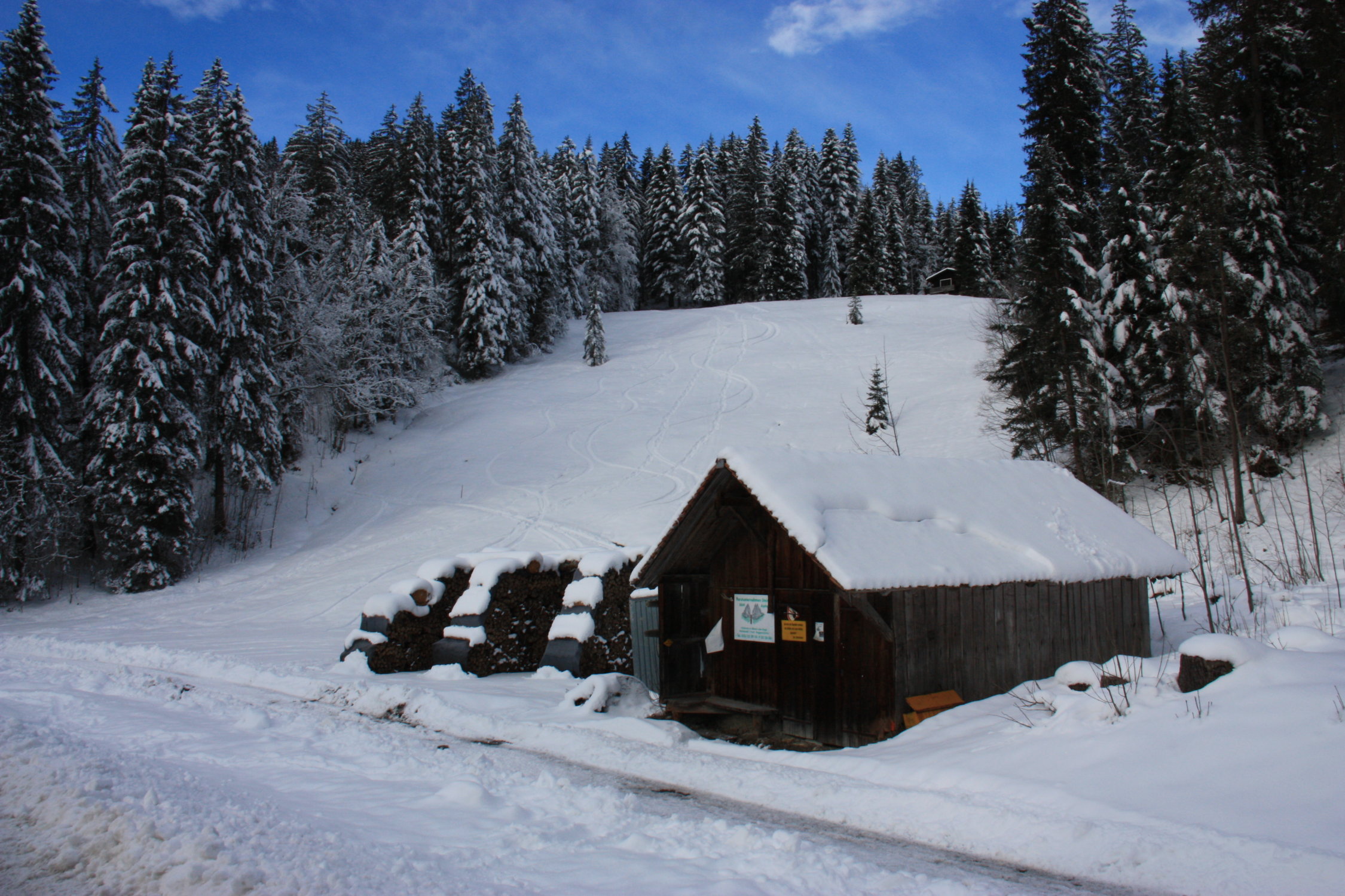 Genügend Schneemenge vorhanden. Auf den Forststrassen ist bei der Abfahrt auf Eisplatten zu achten.
