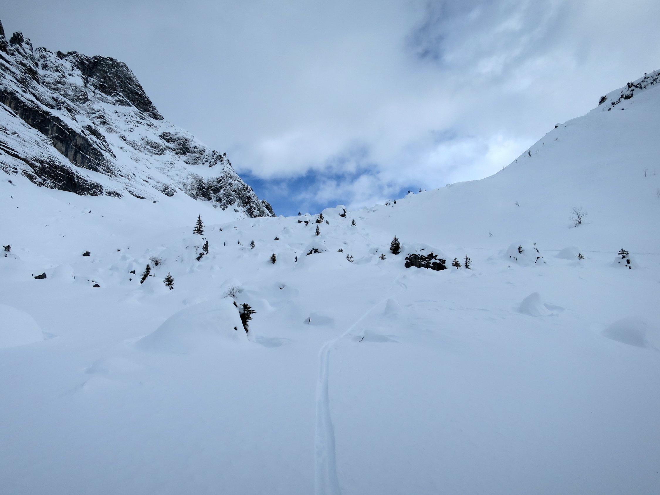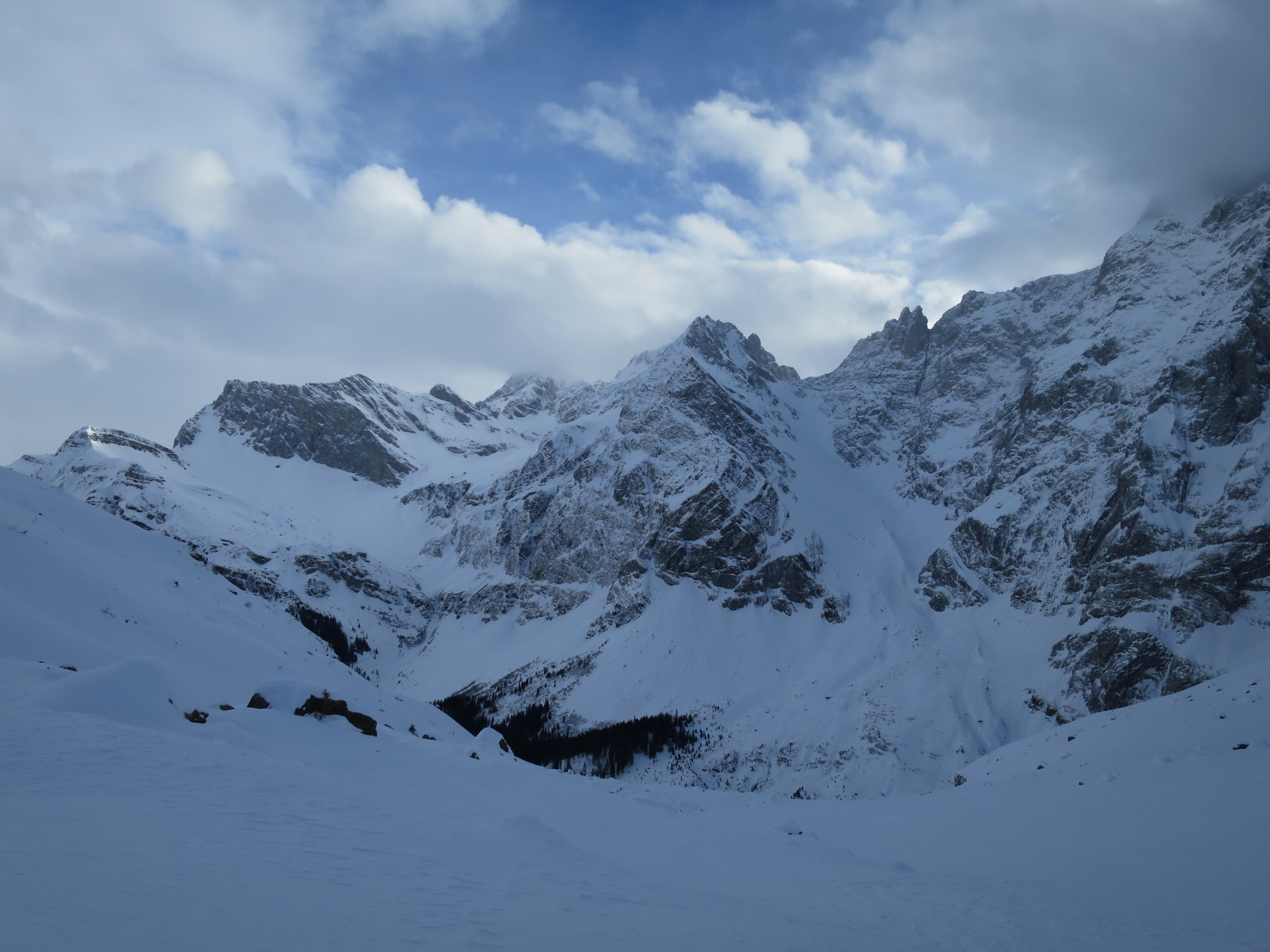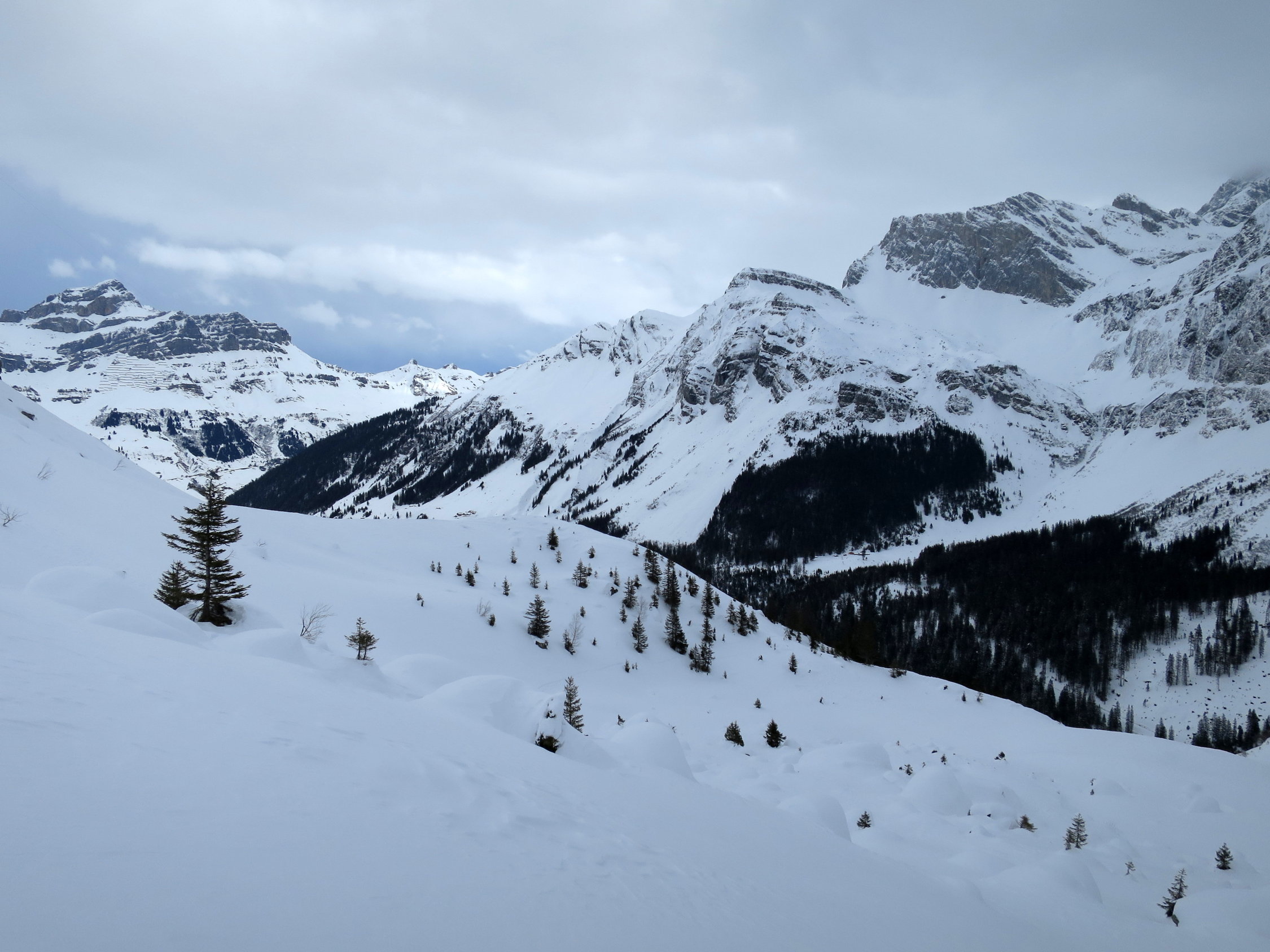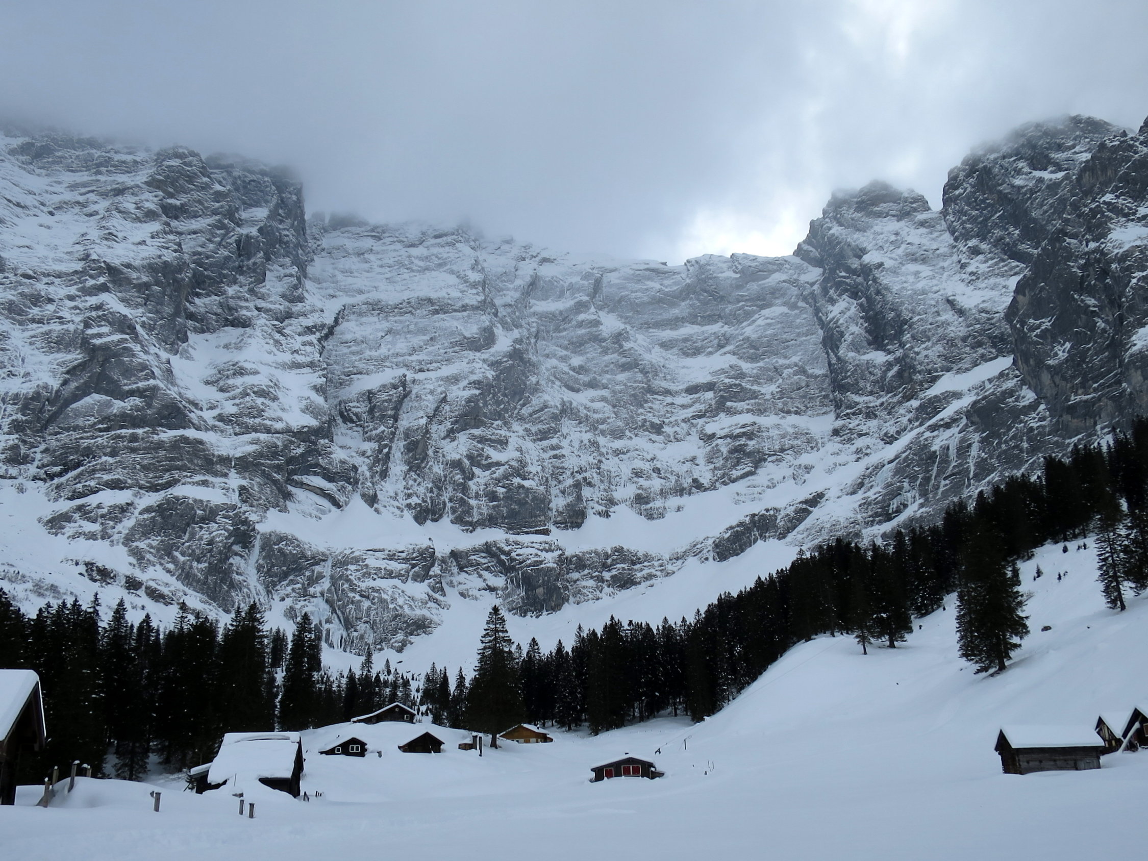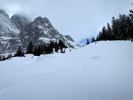 Von Unterschächen auf der Brunnistrasse bis zum "Brüggli" beim Parkplatz der Sittlisalpbahn. Rechts vom Hinter Schächen über Alt Rüti und Lauwi auf die Brunnialp. Von Brunni durch den Chärschelenwald war eine steile Skispur vage zu erkennen, sie wurde durch Schneeschuhe arg ramponiert. (Motzen hilft überhaupt nichts, wem es nicht passt darf ja selber neu spuren!) :) Ab dem Flösch war dann sowieso alles vom Winde verweht. Heute fand sich ein Mix aus Pulverschnee, Triebschnee, Hartschnee und Winddeckel. Obwohl sich ab und zu blaue Löcher in der Wolkendecke zeigten, war die Sicht sehr diffus. Ins Hinter Griesstal gespurt dort kam Wind (Föhn) auf. Whiteout, Winddeckel und müde Beine machten die Entscheidung die Tour abzubrechen leicht. Bis zum Griesstalstein fand ich die Abfahrt ganz passabel, durch das flache Vorder Griesstal war dann "stöckeln" angesagt. (Auch in der Aufstiegsspur). Im windgeschützten Wald Richtung Brunni bester, unverfahrener Pulverschnee. Auf der Brunnistrasse nach Unterschächen zurück. In Spiringen wieder in den Nebel eingetaucht.