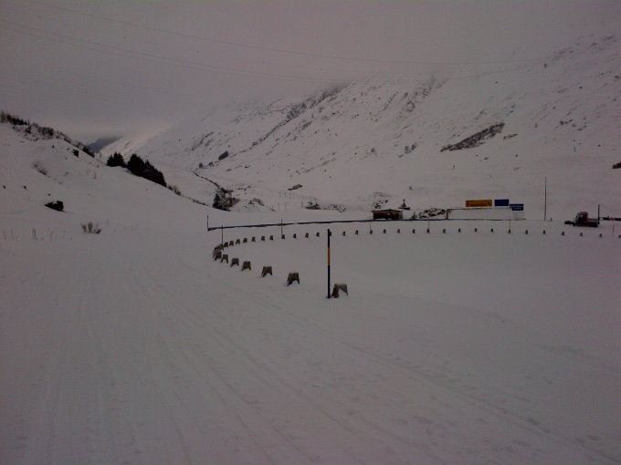 Eine gute Entscheidung nicht von der Lifttrasse abzuweichen (hatte überlegt, noch ein Stück Richtung Passtrasse abzufahren), denn die Sicht bei der Abfahrt war höchstens 20 m weit.