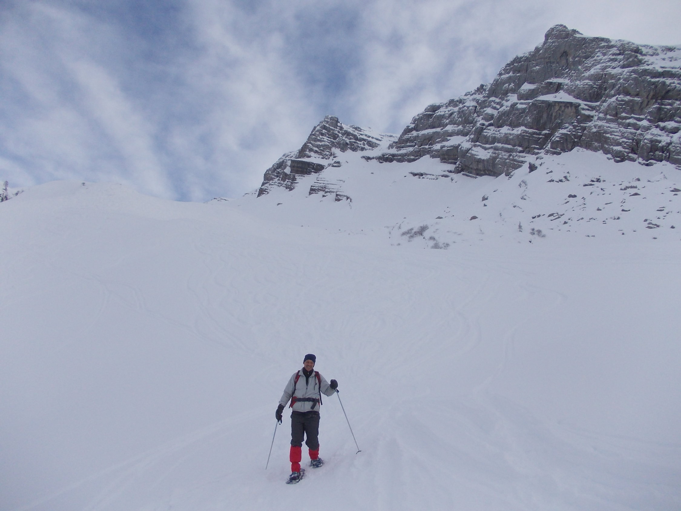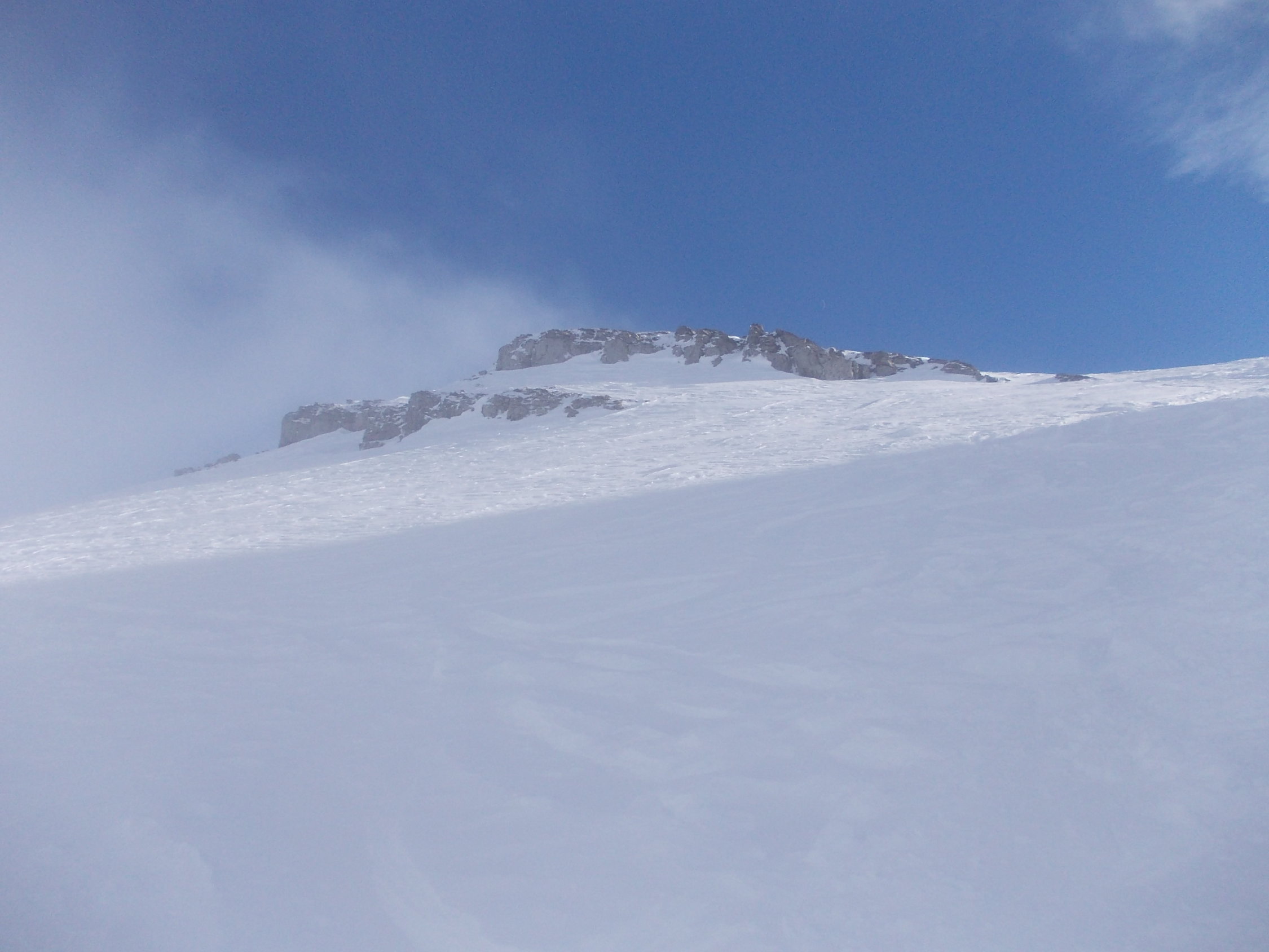 Wegen der für den Nachmittag angekündigten Schlechtwetterfront standen wir etwas unter Zeitdruck, weshalb ich nach Absprache mit meinem Tourenpartner Christoph ab etwa P 1900 allein zum Gipfel "gespurtet" bin.