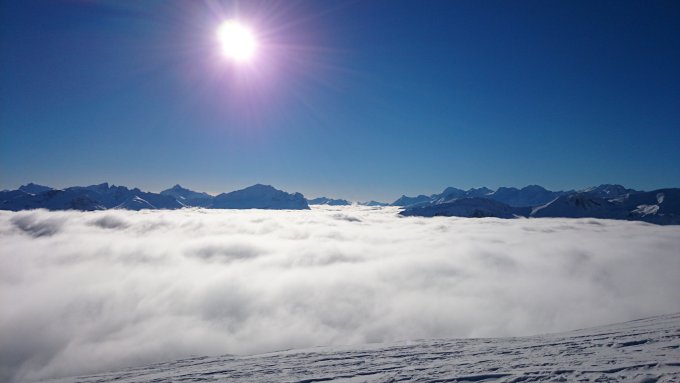 Skifahrerisch war es nicht so der Hit, landschaftlich mit dem dichten Nebelmeer, dem super sichtigen Wetter und dem blauen Himmel war es aber genial.