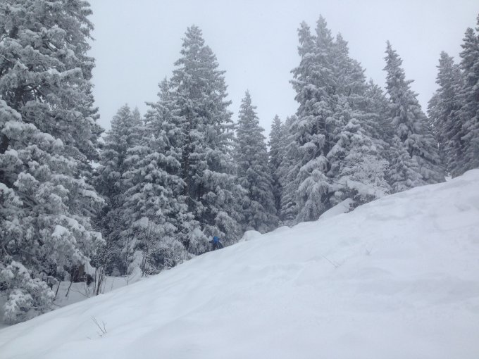 Es hat viel Schnee gegeben. Da die Unterlage aber nichts ist (auch auf 2000 Meter kommt teilweise noch direkt die Alpweide hervor) ist die Abfahrt mit neuen Skiern nur bedingt geeignet. Wir konnten dann aber doch in super Pulver bis hinunter nach Starkenbach fahren.