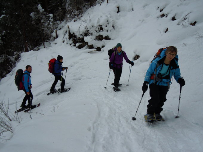 Top Verhältnisse für eine Schneeschuhtour. Für die Skitourenfahrer sind die Schneeverhältnisse im Waldbereich äusserts knapp, im oberen Bereich gut!