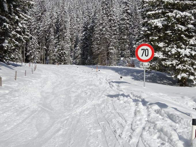 Ausreichend Schnee, teilweise sind aber Wasserrinnen und Bäche offen, Mulden und Gräben deutlich sichtbar, es braucht auch hier noch Schnee!
