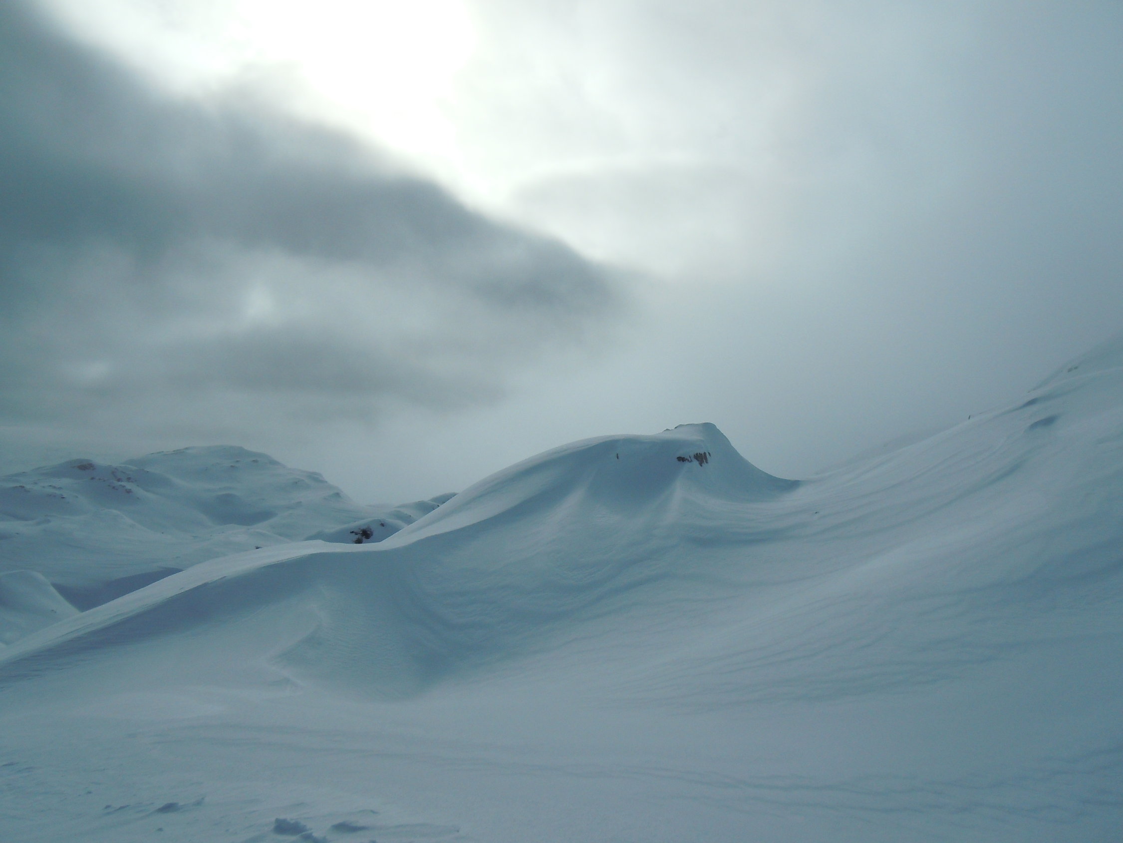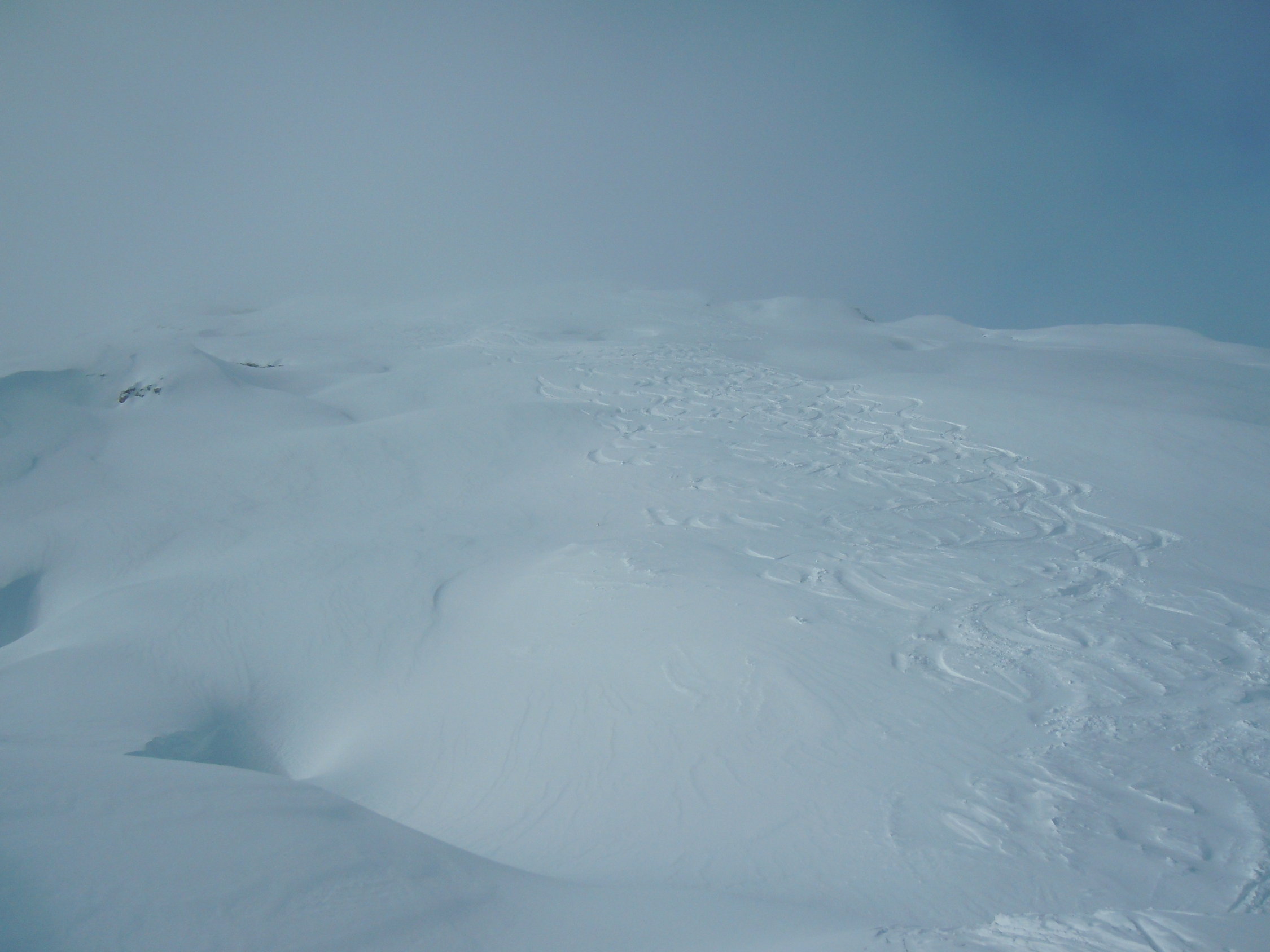 Mit dem starken Wind wird wiederum eine Menge Schnee verfrachtet! Mit einer guten Routenwahl ist die Tour aber unbedenklich.