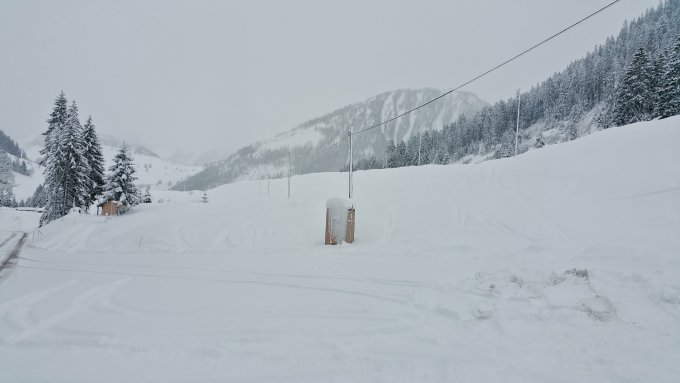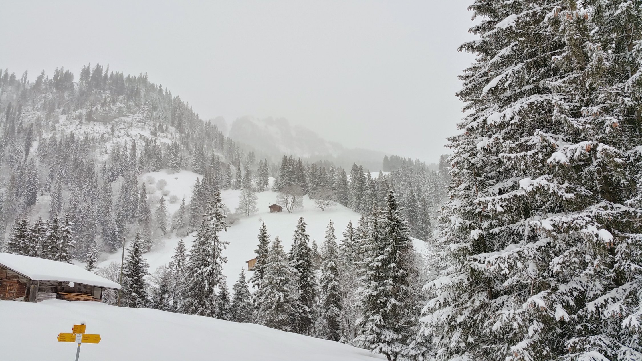 Nachdem es über Nacht ca 20-30cm im Diemtigtal geschneit hat musste ich Schneeketten aufziehen, um den Meniggrund zu erreichen. Die Temperatur war um 9 Uhr ca. 1-2 Grad plus. Der Aufstieg ging gut, obwohl leichter Schneefall und Wind das finden der Aufstiegspur erschwerte. Nach dem Aufstieg aus dem Gründli, bei der Alp, begann der Wind stärker zu werden und der Schneefall hat zugenommen. Der starke Sind wurde zu einem Sturm(gefühlt?!) und der Schnee fiel horizontal. Das veranlasste mich den Aufstieg abzubrechen. Die Abfahrt war alles andere als angenehm. Der Schnee ist durchnässt bis zum Grund. Ich hätte mein langes 2m Snowboard mitnehmen sollen, statt des Splitboard.