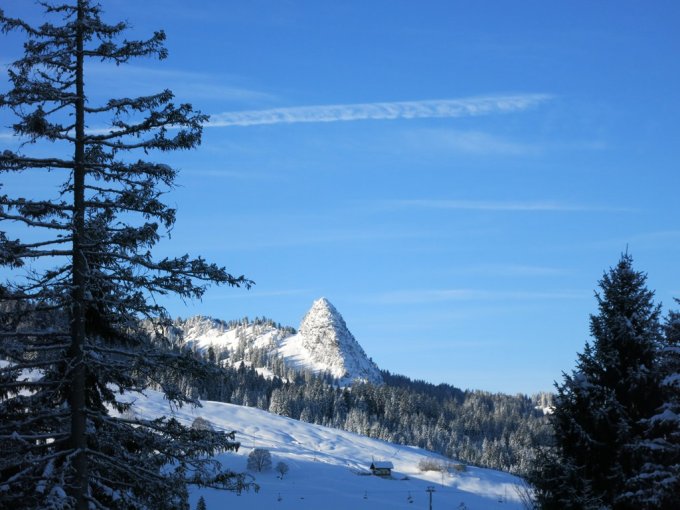 Technisch einfache Tour auf einen hübschen Aussichtspunkt. Laut einem Skitourenführer: „Schön frei stehend und genau in der Mitte eines fast olympischen Talkessels.“