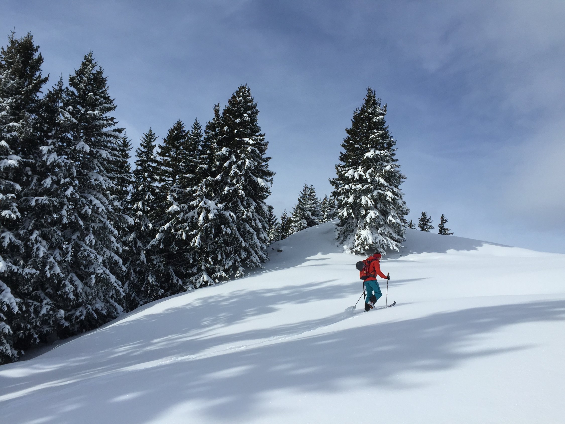 Von der Bergstation des Sessellifts Kaiseregg abgefahren zur Salzmatt und dann auf bestem Betonschnee auf das Hohmattli. Über die NW-Flanke (im oberen Teil knapp 40°) abgefahren. Bester Pulverschnee (ca. 30cm) bis nach Schwarzsee.